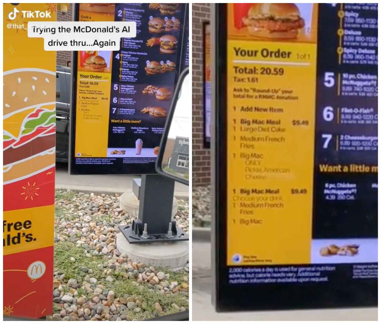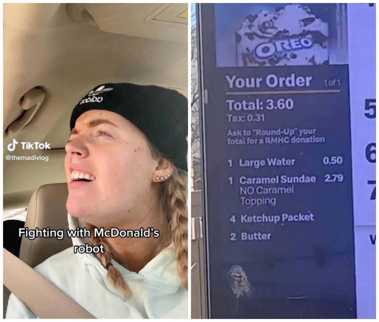 TikTokにアップされているいくつかの失敗談をご紹介しよう。あるTikTokユーザー(@themaddivlog )は、AIドライブスルーでアイスクリームを注文したが、注文内容を確認するための画面に表示されたのは、アイスクリームではなく「バター2個とケチャップ4個」だった。