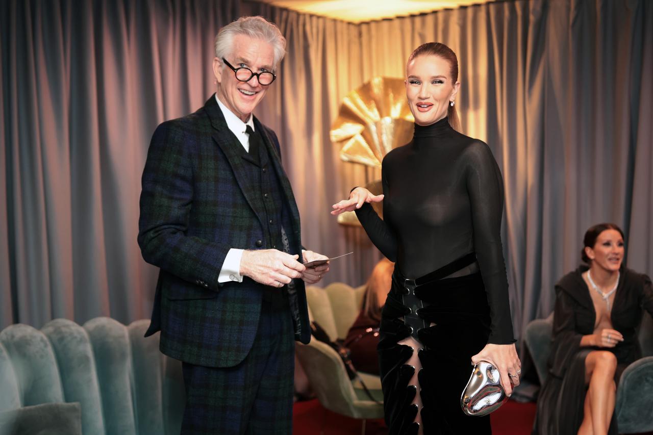 モデルのロージー・ハンティントン=ホワイトリーは、授賞式会場の控え室でマシュー・モディーンと談笑。ロージーがここまで満面の笑みになっている瞬間は、意外とレアかも?