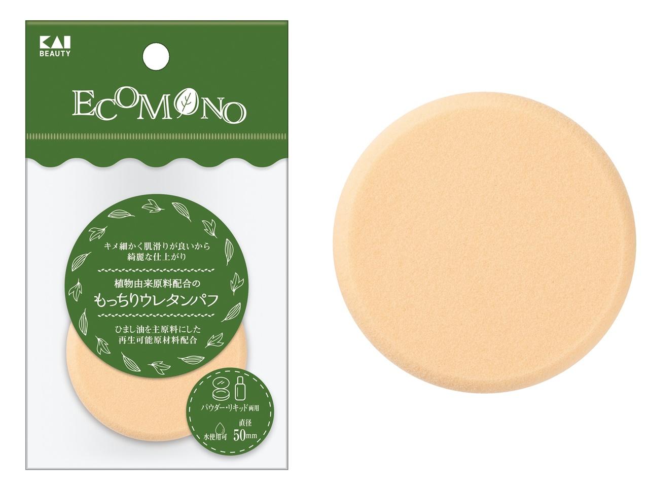「植物由来原料配合のもっちりウレタンパフ」は、ひまし油を主原料にした植物由来原材料を配合することで、製品由来のCO2排出量を削減。独特のもっちりとした質感で心地よい肌触り。パフの表面がきめ細かいため、ファンデーションを均一な仕上がりに。