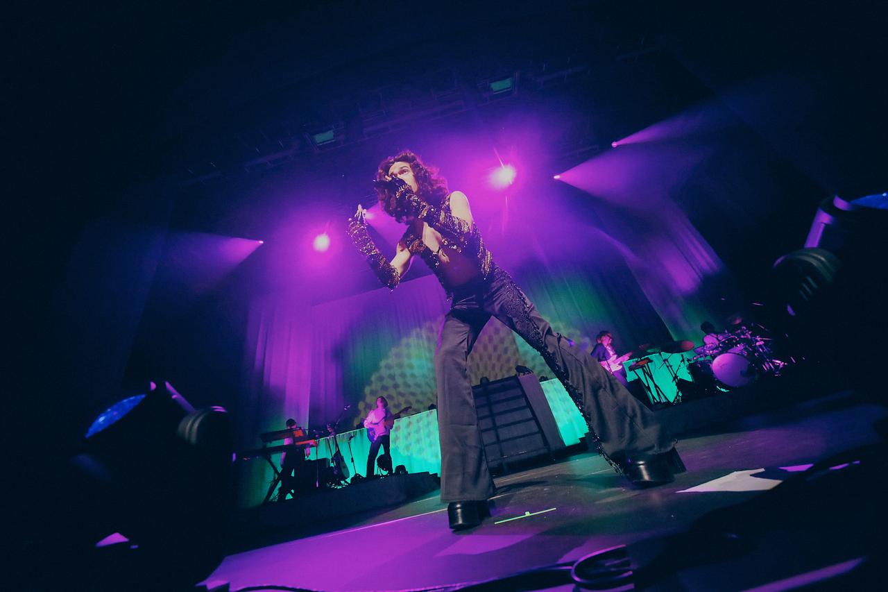 コナンのこの日の衣装は、黒のスキニーパンツに、ゴールドのスパンコールがついた煌びやかな黒のベスト。キラキラした衣装をチョイスしたのが、ジェンダーレスなファッションを好むコナンらしかった。途中、観客にマイクを向ける場面もあったのだが、1曲目から会場はシンガロングの大合唱に包まれることとなった。