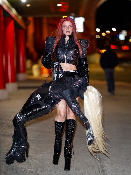 バッグということもあり、180㎝の人形には持ち手もしっかりついている。この人間型バッグは、どれくらいの量の荷物が入るのか気になるところ。攻めファッションのジュリアは、今日も奇抜なファッションで周囲を驚かせている。(フロントロウ編集部)