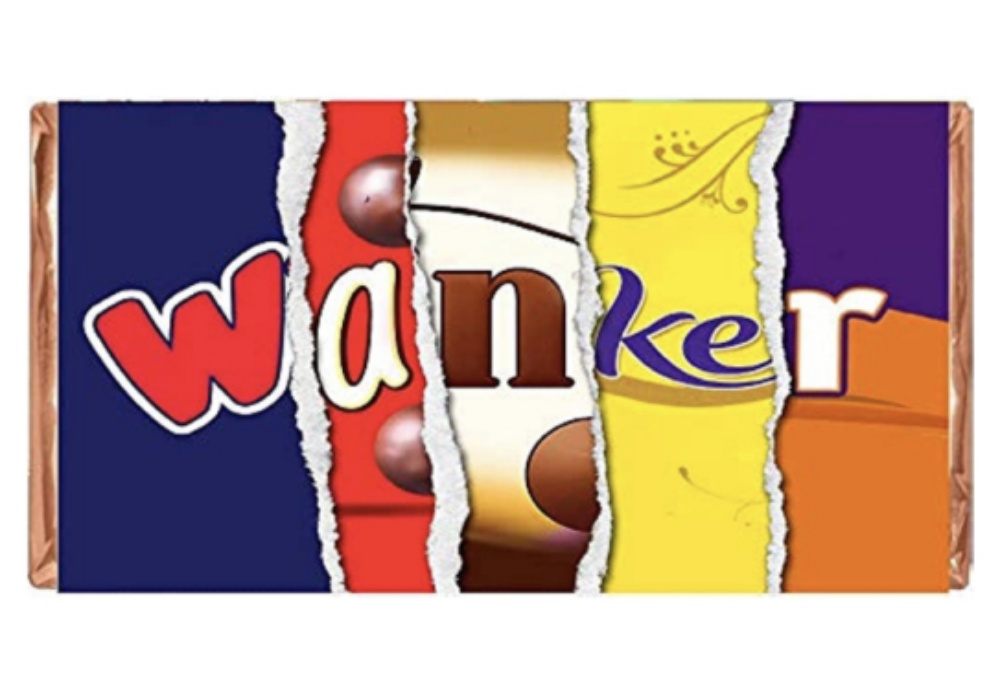 しかも運悪く、同封された商品は子ども向けではなかった。それはラッピングペーパーだったのだが、問題はそのデザイン。イギリスにはWispa、Malteser、Minstrels、Flake、Double Deckerというそれぞれ有名なチョコレート菓子があるのだが、そのパッケージの一部を1枚に組み合わせたデザインで、そこにはこんな文字が。