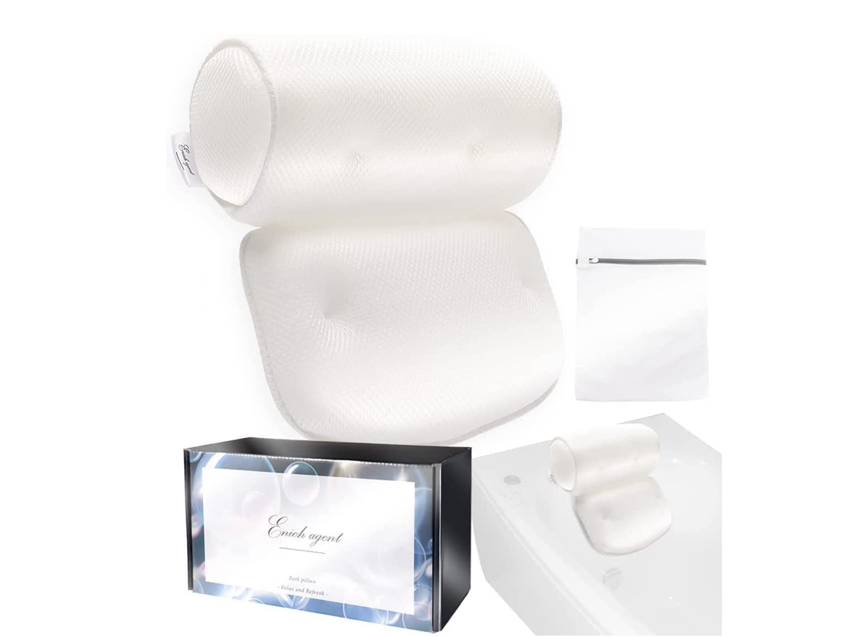せっかくのバスタイムは思う存分リラックスしたいという人には、バスピローがオススメ。柔らかくて厚みのあるバスピローに頭を預けるだけで、首だけでなく全身がリラックス。丸洗い可能な素材なので、清潔に使い続けられる。