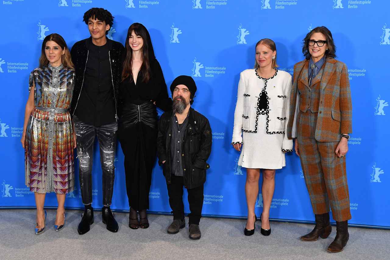 (左から)マリサ・トメイ、エヴァン・エリソン、アン・ハサウェイ、ピーター・ディンクレイジ、ヨアンナ・クーリク、レベッカ・ミラー監督。