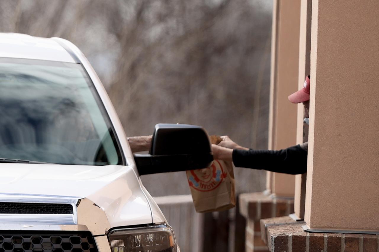 自分で車を運転してきて食事を購入したジーンはお腹が減っていたようで、そのまま駐車場でパクリ。