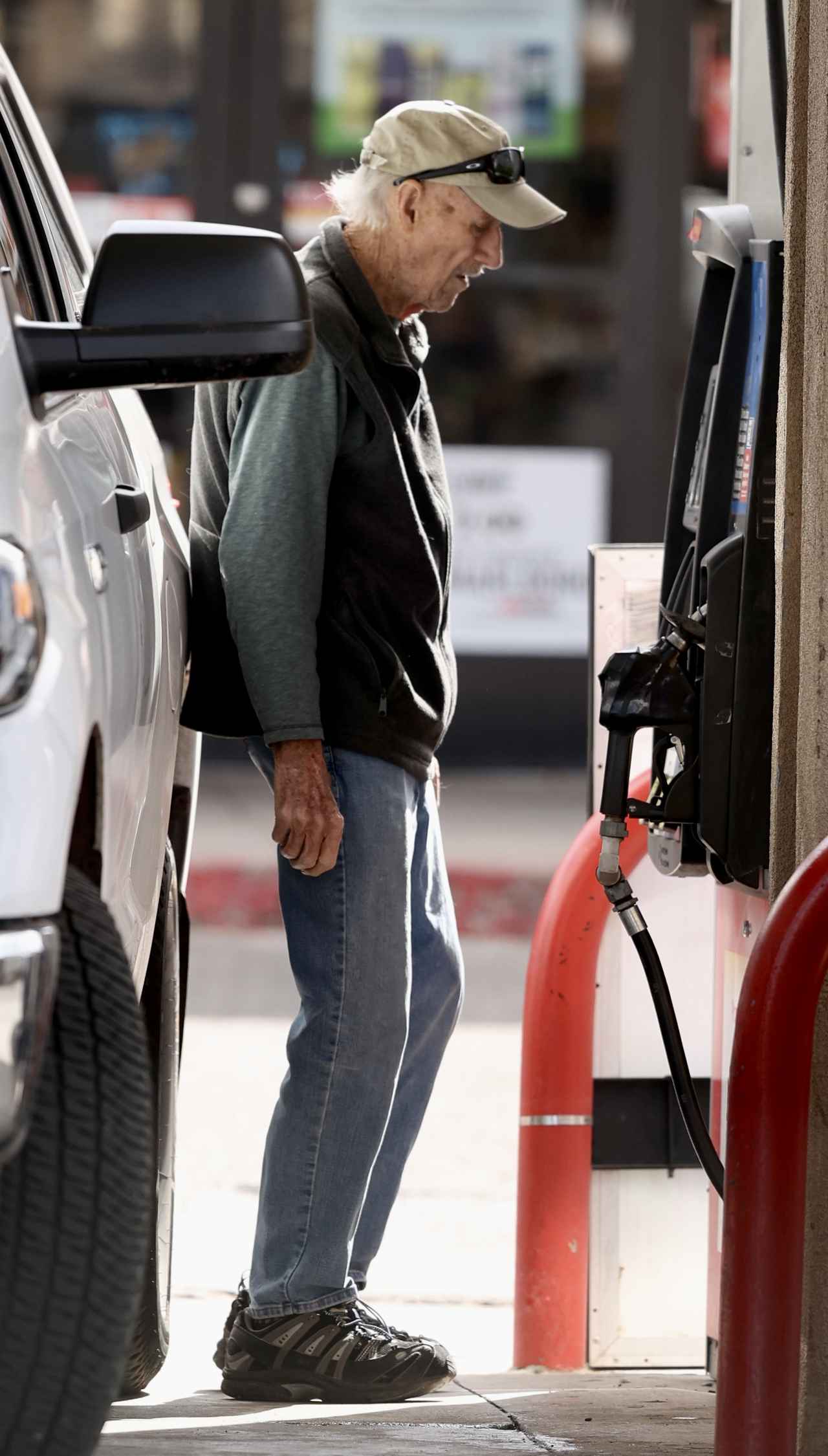 その後はガソリンスタンドへ行き、自分で給油。売店でコーヒーも購入していた。