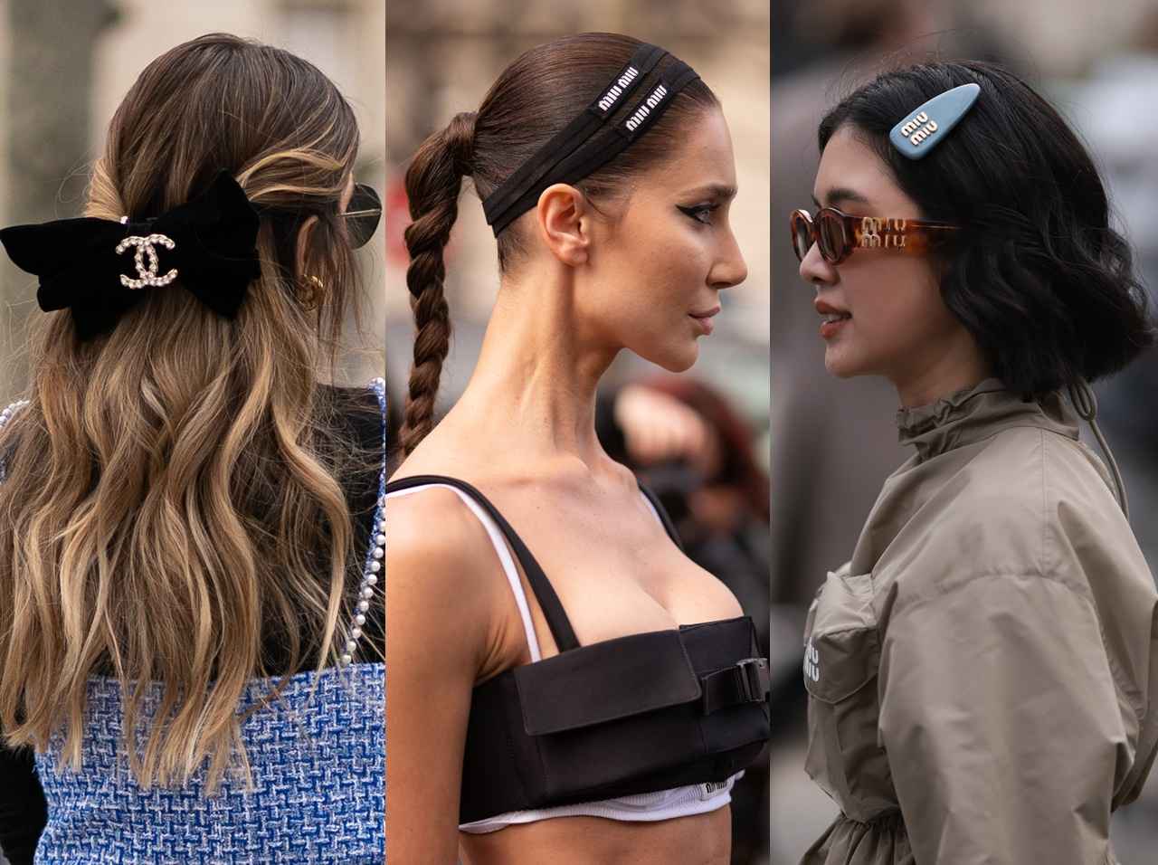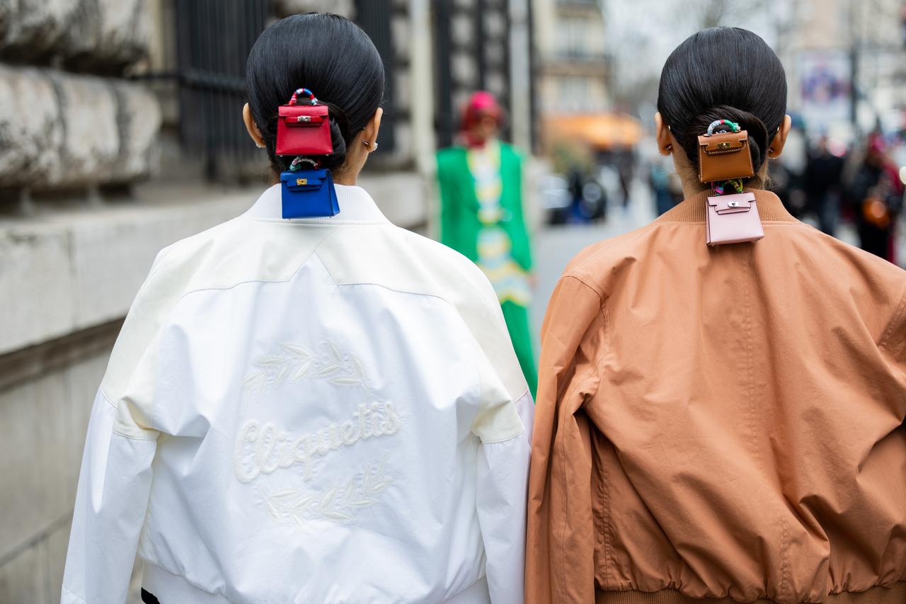 パリ・ファッションウィークでひと際目を引いたのが、憧れブランドのモチーフやロゴをあしらったヘアアクセを使ったヘアアレンジ。エルメスのアイコン的バッグのひとつ「ケリー」の超ミニサイズを取り入れたアレンジや、シャネルのリボンを取り入れたアレンジ、ミュウミュウのバレッタを取り入れたアレンジが注目の的に。