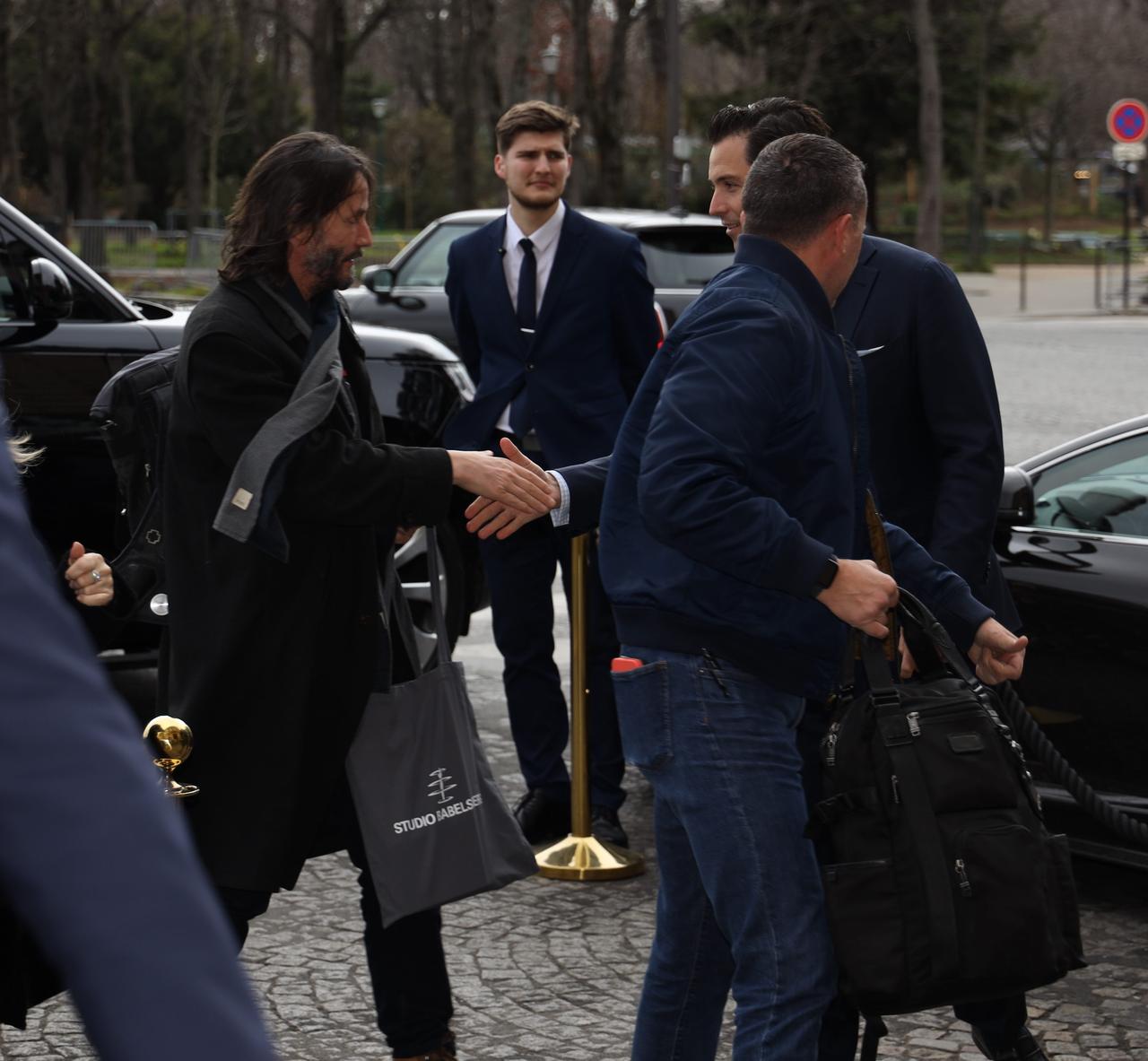 キアヌ・リーブスの姿を、フランスのパリでキャッチ! 関係者に囲まれながらも、ファンに手を振ってくれた。(フロントロウ編集部)