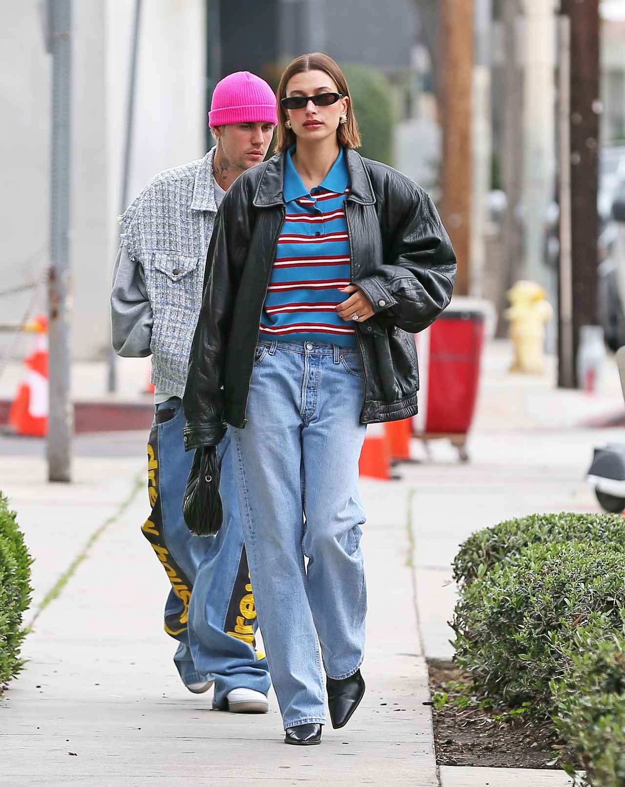 リアーナはエイサップ・ロッキーとのデート中にロエベのポロシャツを着用していたが、ヘイリーも同じく夫のジャスティン・ビーバーとのデート中に着用。ヘイリーはヴィンテージのリーバイス(Levis)501と合わせて。ポロシャツの上からヘイリーお得意のオーバーサイズのレザージャケットを羽織り、モードなサングラスとポインテッドのブーツでクールに仕上げた。