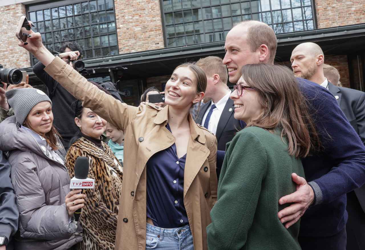ポーランドで一般人との記念撮影に応じるウィリアム皇太子。