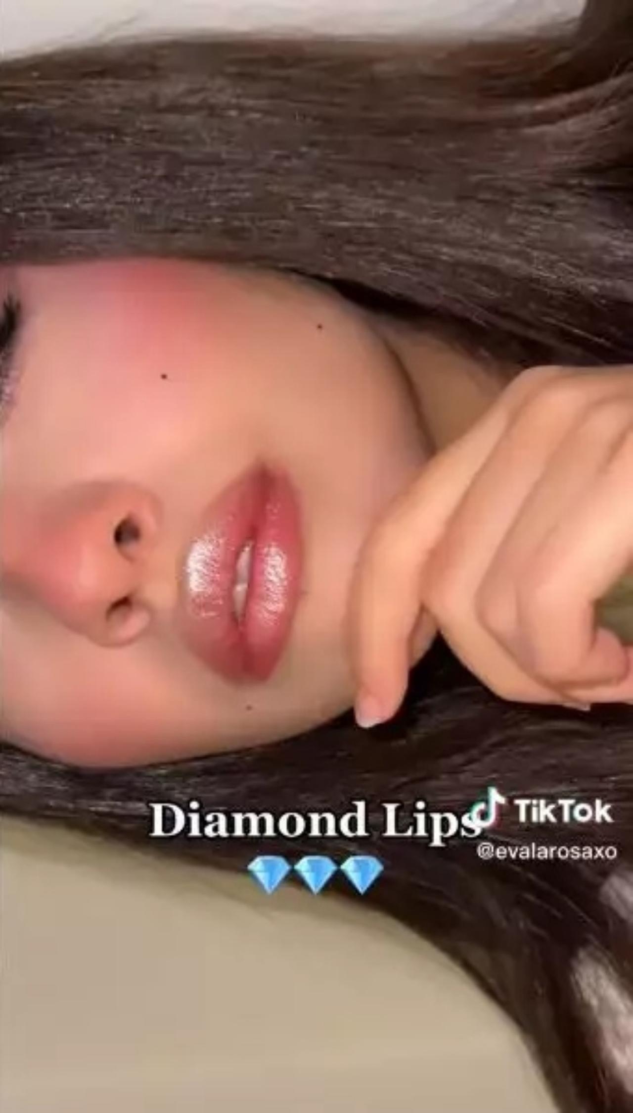 このリップトレンドをつくり出したTikTokクリエイターのエヴァ・ラローザによると、ダイアモンド・リップをキレイに仕上げるポイントは、パウダーハイライトを「のせる位置」。