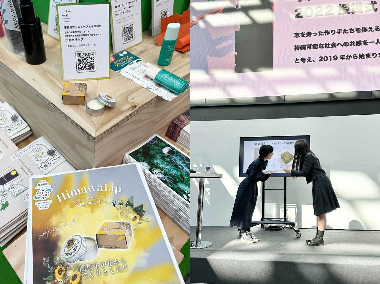 その多様性は審査結果にも表れていて、たとえば2022年度より新設された「審査員賞ニューフェイス部門」では、聖徳大学附属取手聖徳女子高等学校の学生たちが作り上げた、ひまわリップ「ひまわリップ保湿リップバーム」が授賞した。