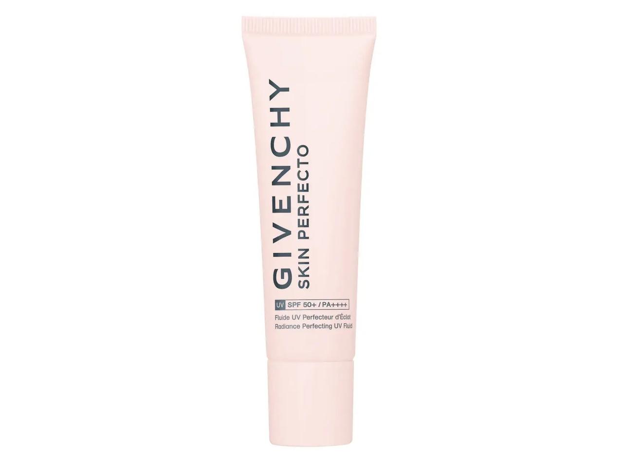 ジバンシイの「スキン PFCT UV フルイド」は、優れたUVカット効果とともに、肌に血色感をプラスするほんのりピンク色の日焼け止め乳液。