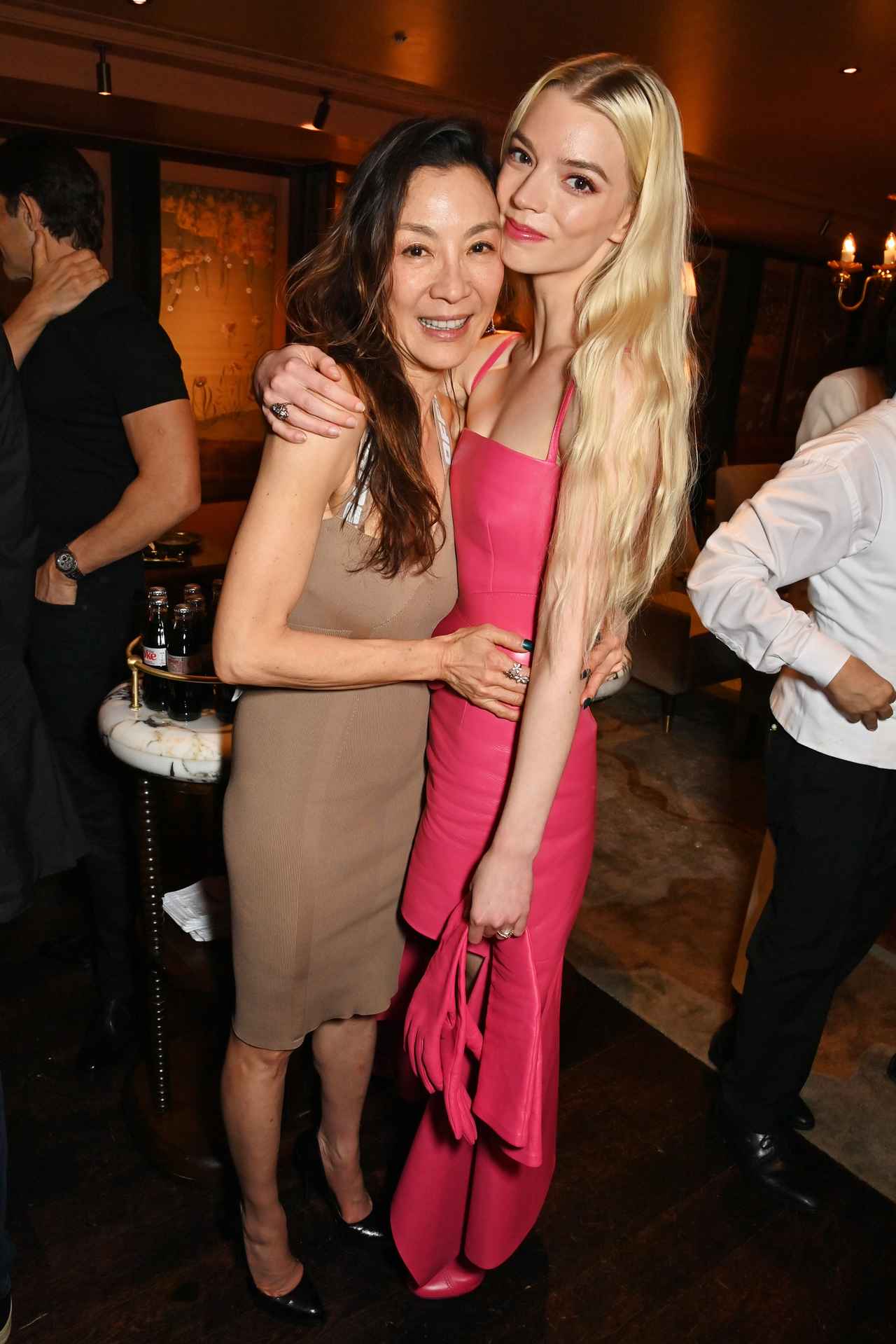 映画『モーガン』で共演したアニャ・テイラー=ジョイは、まるでバービー人形のようなピンクのドレスを着用して誇らしそうにミシェルをギュー。