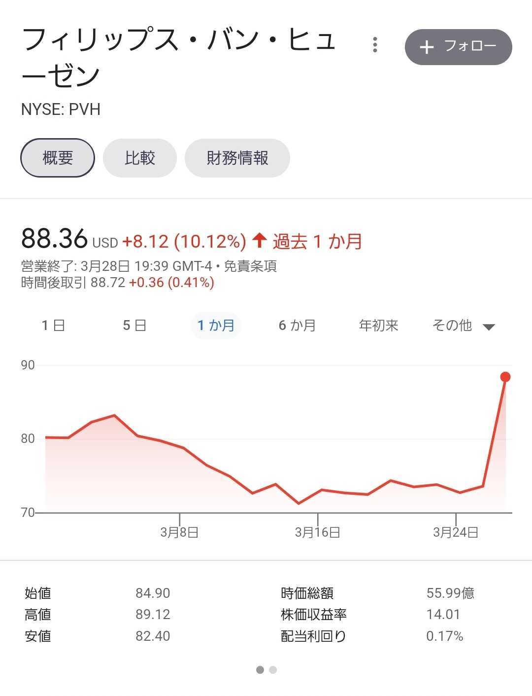 それは、カルバン・クラインの親会社であるPVHの株。ジョングクのキャンペーンが発表されると、一気に跳ね上がったのだ。