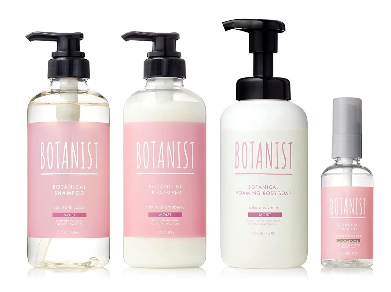 ボタニスト(BOTANIST)の2023年春限定4点セット。シャンプー、トリートメント、ヘアオイル、泡タイプのボディーソープが入ったセットなら、サクラの香りに包まれながらヘアケアやボディケアができる。