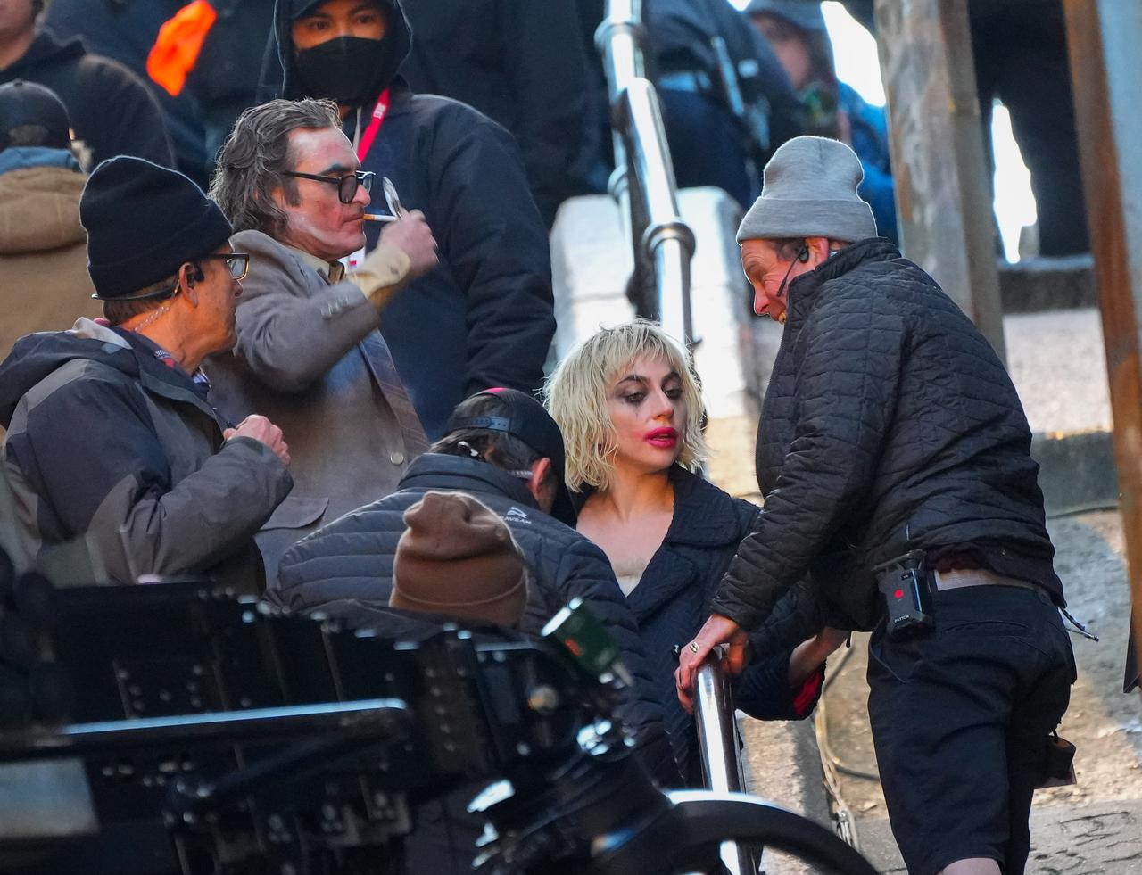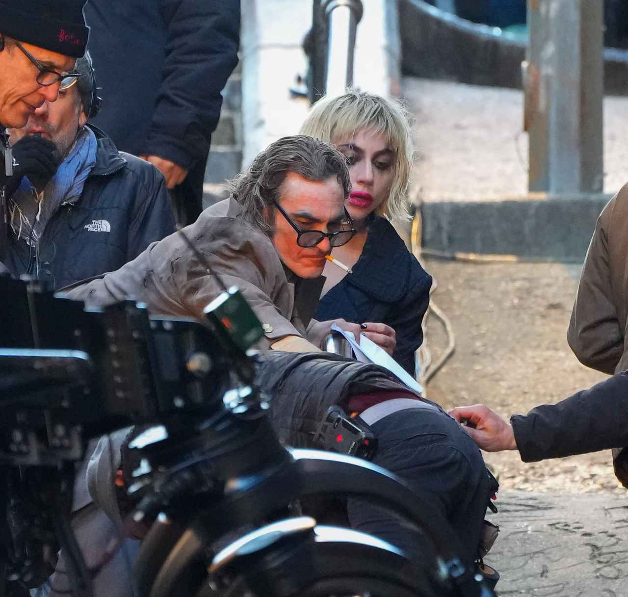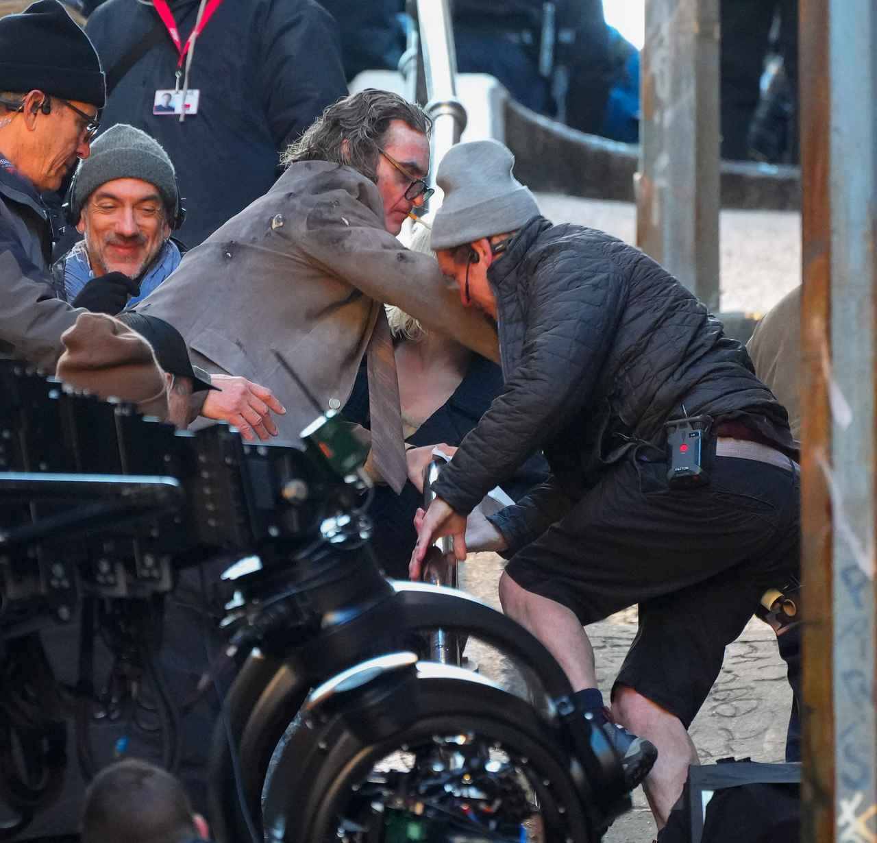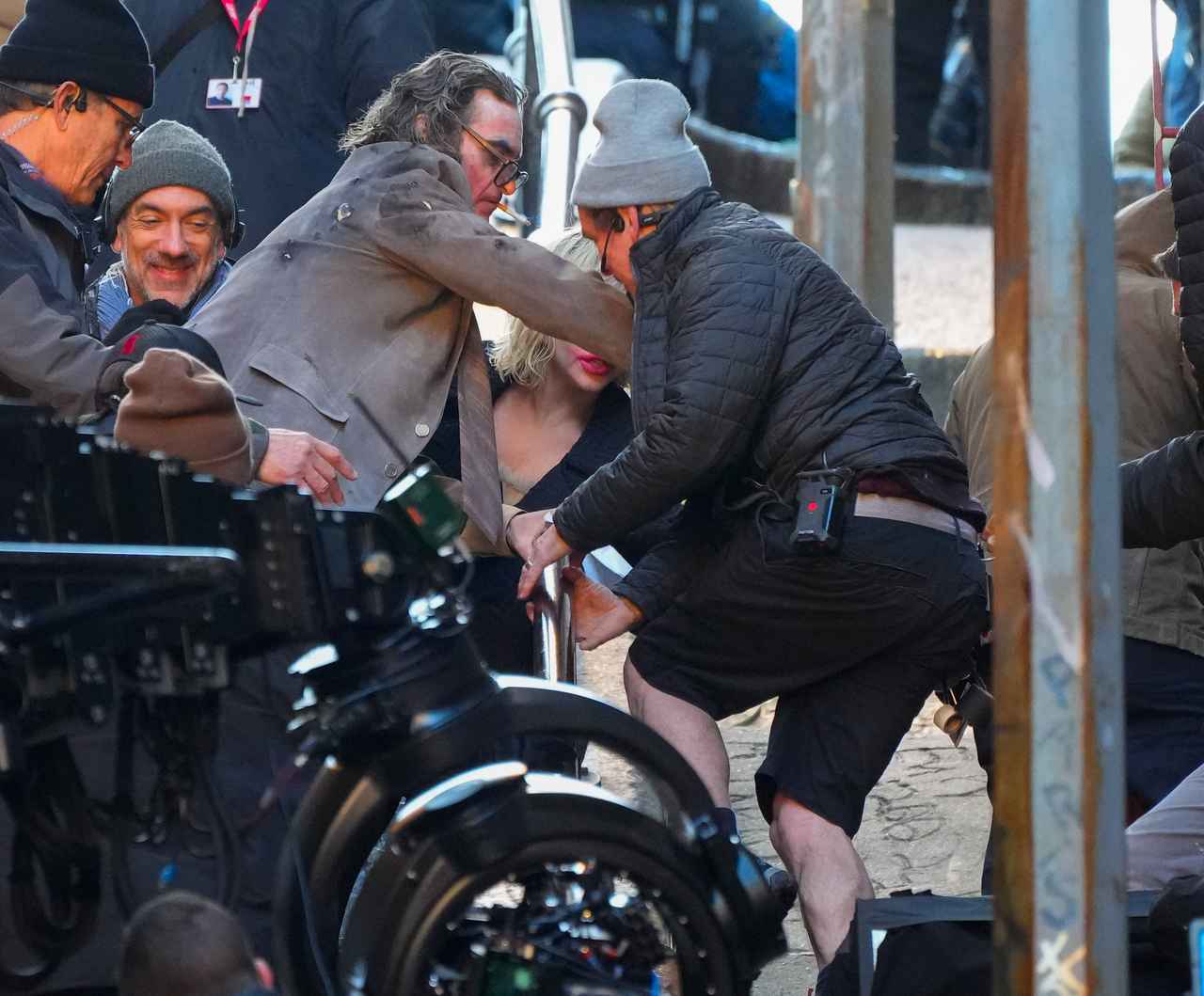 アクシデントが起きたのは、撮影の合間。フィリップス監督、ホアキン、そして本作から参加するレディー・ガガが集まって座っていたところ、突然、ホアキンたちの背後から近づいてきたクルーが転倒して手すりを超えて頭から真っ逆さま。