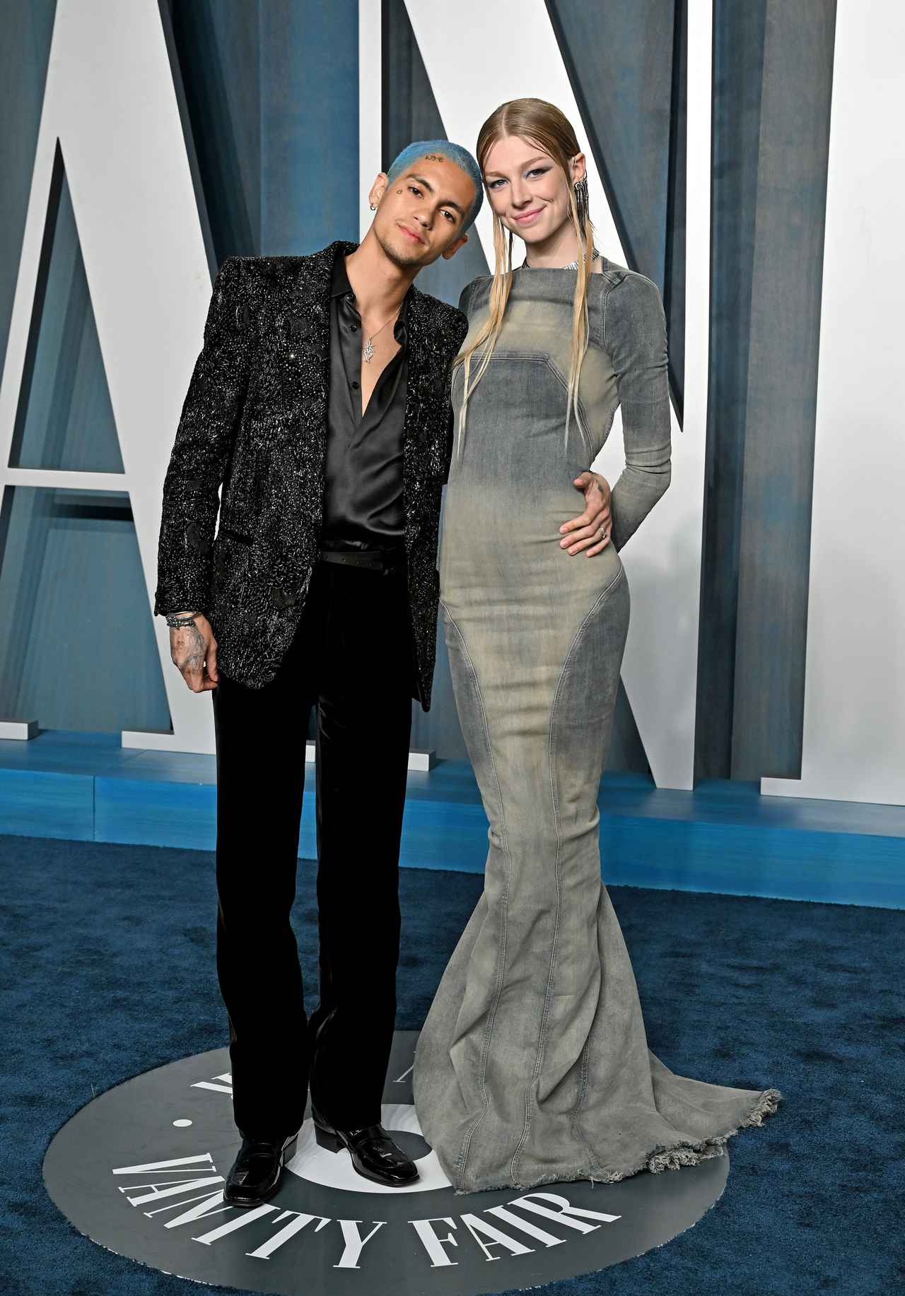 髪型が『ゼルダの伝説』シリーズに登場するキャラクターであるゼルダ風だと話題になったルック。同伴しているのは、恋人のドミニク・ファイク。