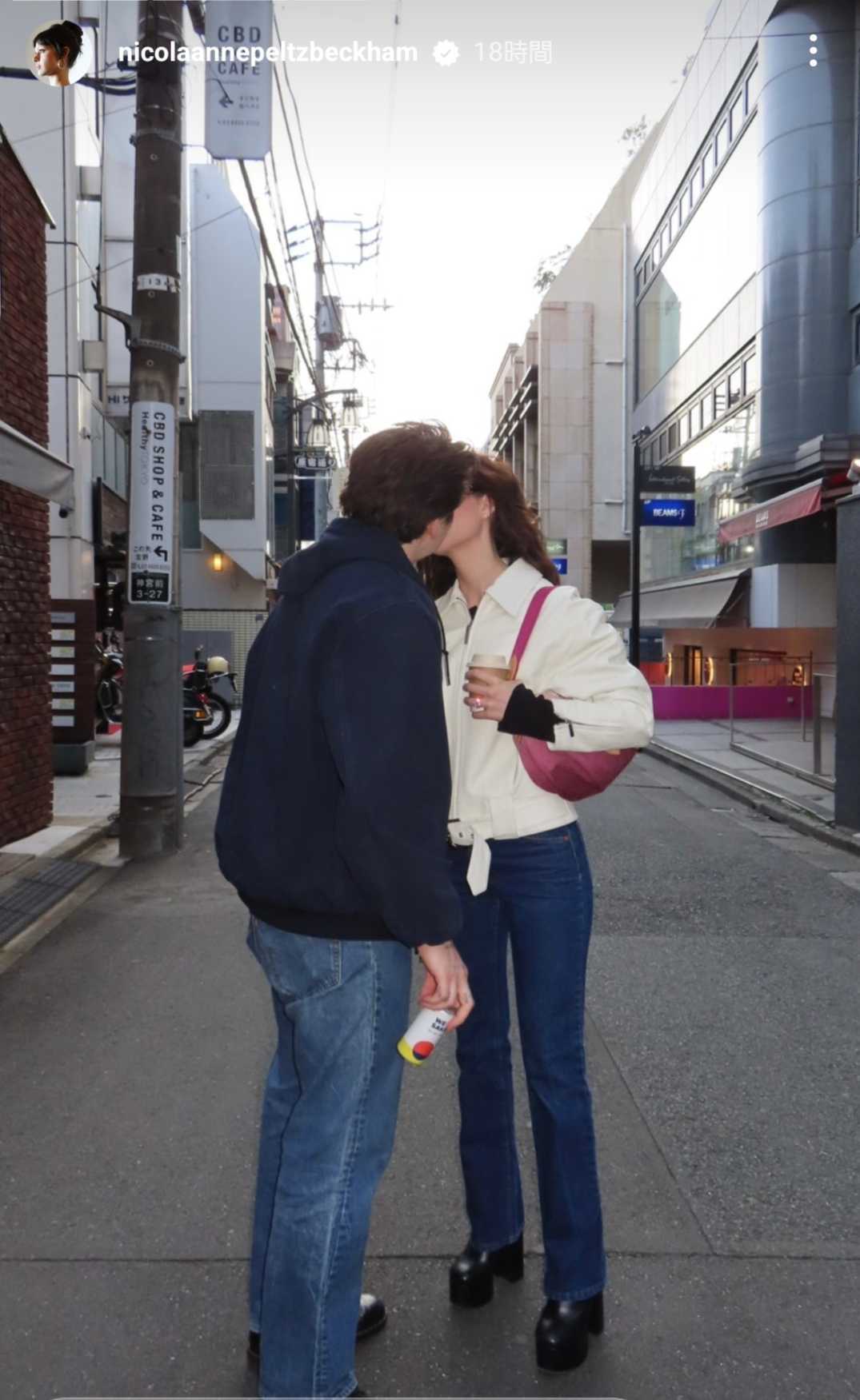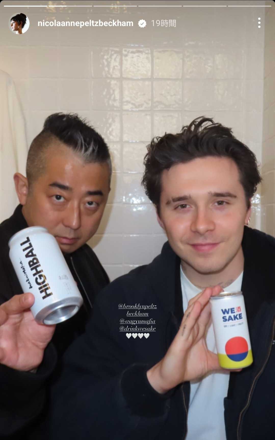 そしてブルックリンとニコラは、渋谷で路チューしている写真も公開。ここでブルックリンが手に持っている缶は、自身がプロデュースする日本酒「WeSake」。WeSake は日本の古い酒蔵で作られ、愛好家だけでなくこの分野の初心者にも親しみやすいことを目指しているブランドで、ブルックリンは2023年に酒好きが高じて共同創業者兼パートナーとしてWeSakeを立ち上げた。