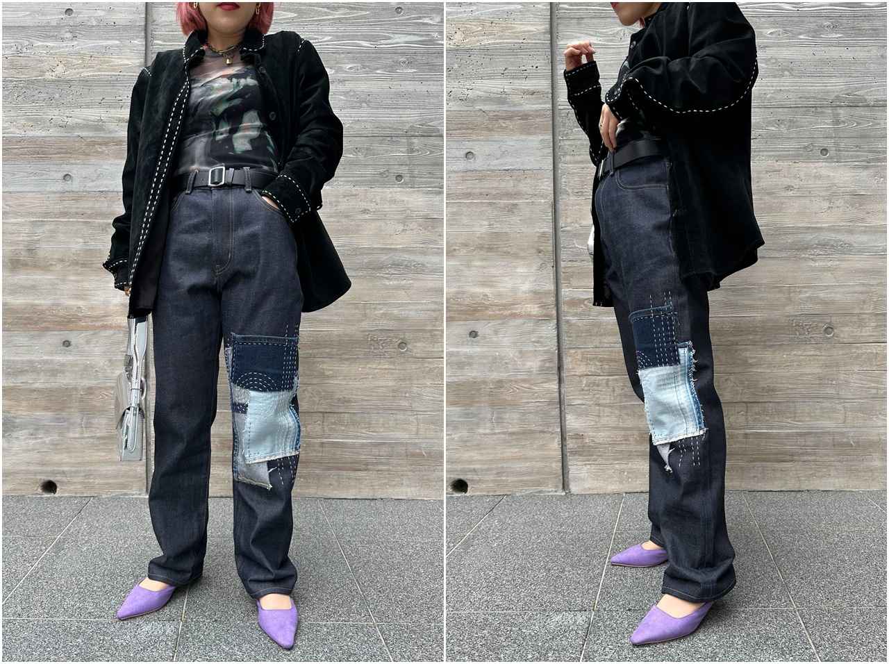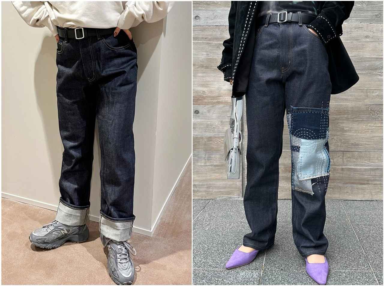 リメイクのデザインで目指したのは、レトロながらひとクセあるパッチワークデザイン。ここ最近海外のセレブやファッショニスタたちがパッチワーク風のデニムをこぞって着用しているのを見ていたため、こんなデザインがいいな…となんとなくのイメージは持ちつつ店舗で相談してみることに。