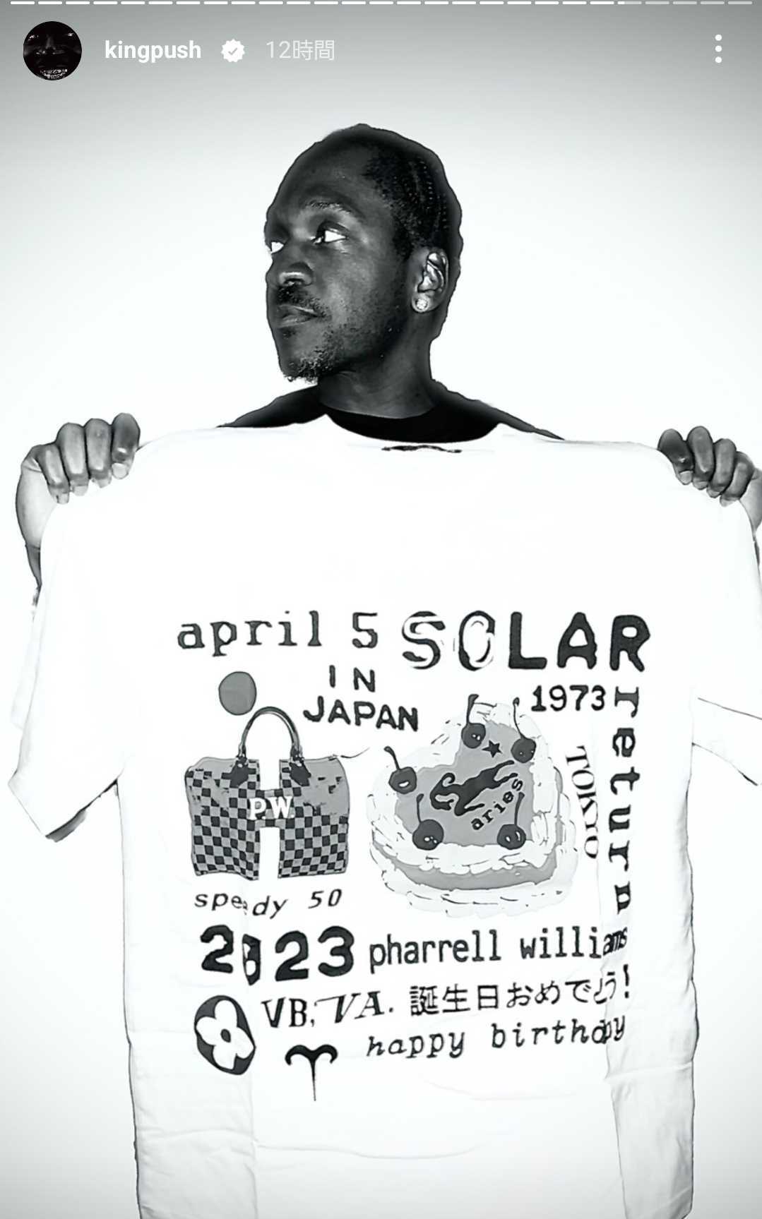 そんな誕生日会には、ファレルの50歳を祝う特注Tシャツが登場。そのTシャツには、ファレルの誕生日はもちろん、牡羊座を意味するAriesというワードと牡羊座のマークが入った誕生日ケーキやイニシャル入りのバッグ、そして日本語で「誕生日おめでとう!」というデザインが施されていた。