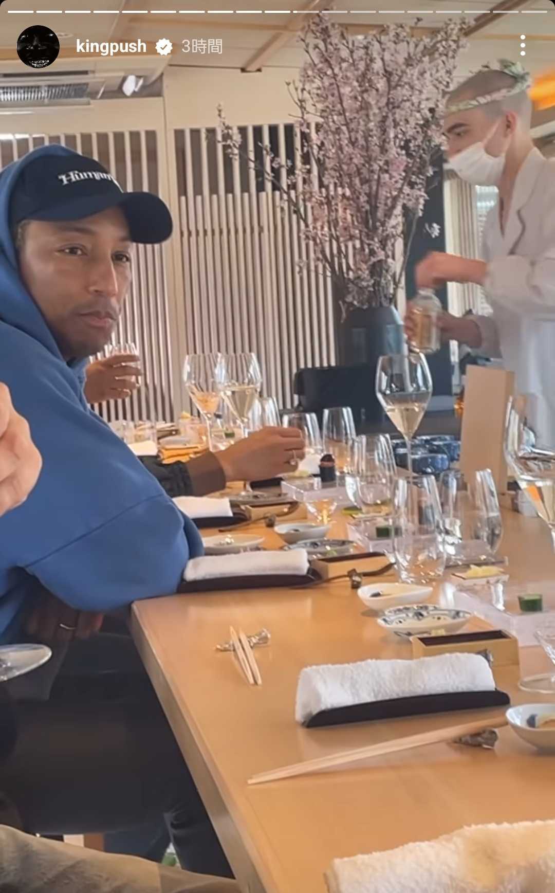 4月5日に50歳の誕生日を迎えたファレル・ウィリアムスは、日本で誕生日会を開いてもらっており、仲良しのケンゾー(Kenzo)のデザイナーである日本人アーティストのNigoやプッシャTらと共に船上で寿司を堪能。