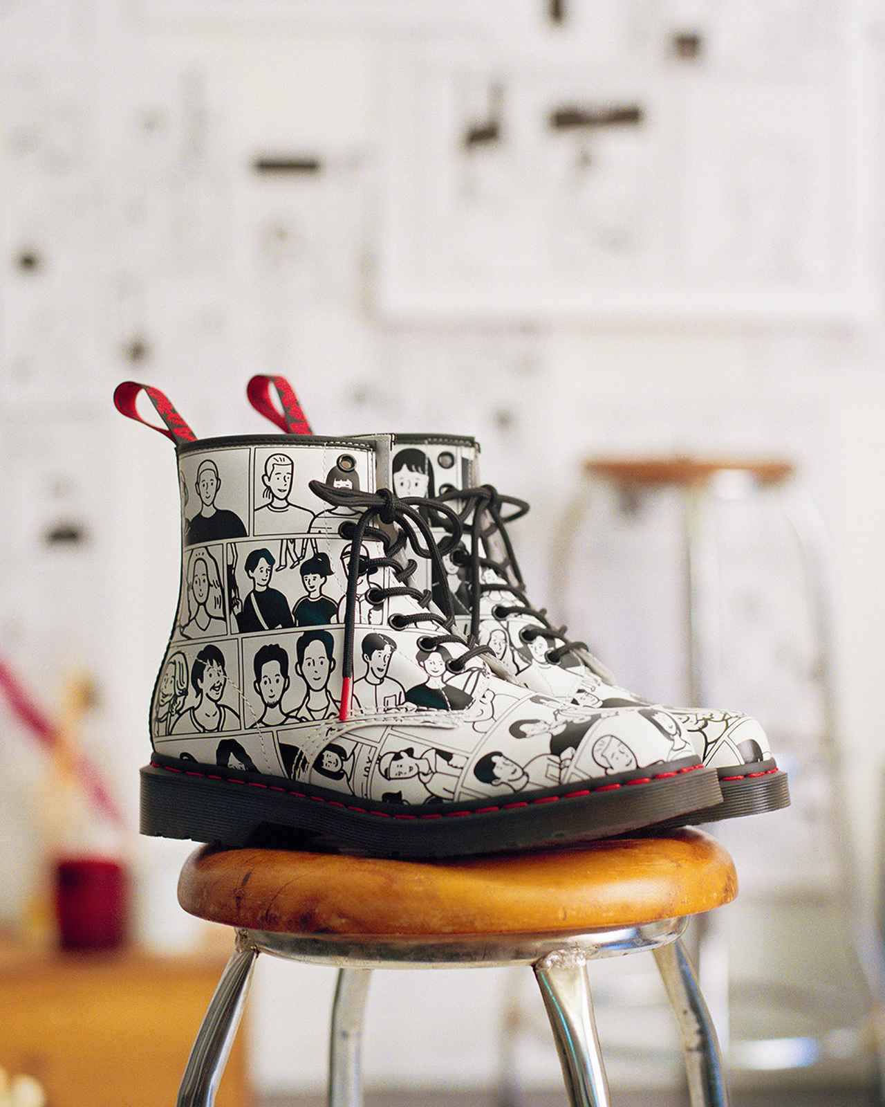 世界中のPRIDE アーティストから選ばれた1人目のアーティストは、日本人イラストレーターのカナイフユキ氏。カナイフユキ氏のアートスタイルをベースにデザインされた「1460 FOR PRIDE 8 ホールブーツ」は、“色々な人がいて、一緒に生きている“というメッセージを込めて、多種多様な人々がそれぞれの個性を大切に平等かつ楽しく暮らせるインクルーシヴな社会を表現。