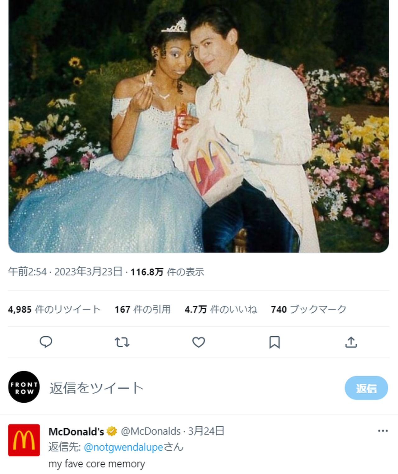 あどけなさの残る、若かりし頃の2人の姿にほっこり。1990年代のポピュラーカルチャー好きにとっては、このカップルが26年の間にどう変化したかが観られることは超貴重。投稿には、「『ディセンダント』で帰ってくる(泣いている絵文字)」「待ちきれない」「このシーンも再現する?」などといった反応が寄せられたほか、まさかの米マクドナルド公式も反応! 「私のお気に入りの思い出」とコメントを残し、マクドナルド公式も90年代のノスタルジーに襲われていることを明かした。