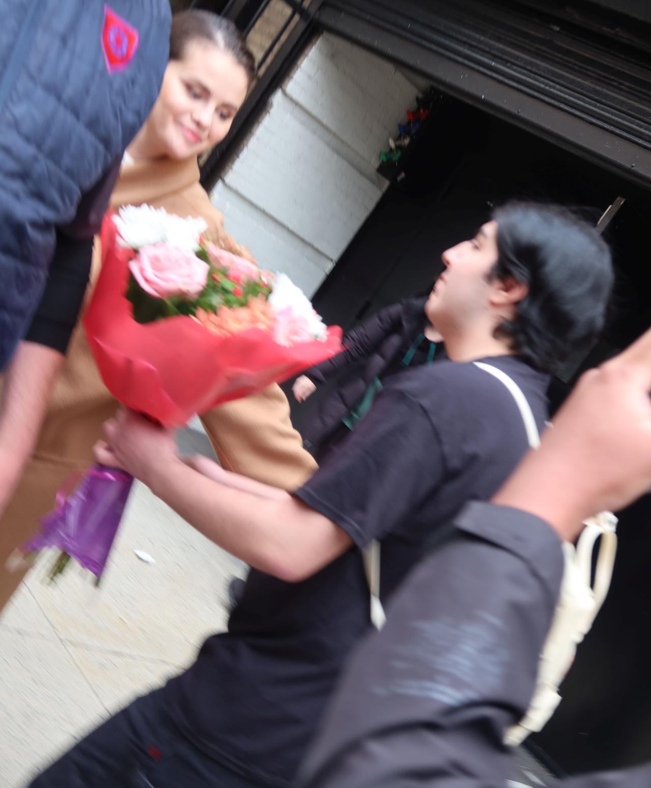 この日はディズニープラスで配信中のドラマ『マーダーズ・イン・ビルディング』の撮影を行なっていたようで、撮影を終えたセレーナが劇場から出てくると、彼女の姿をひと目見ようと出待ちするファンたちが。そして、そのうちのひとりが手に持っていた花束をセレーナに差し出した。