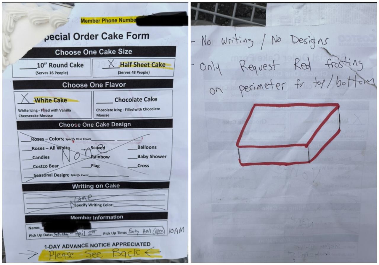 redditに書き込みをした男性も、ハーフシートケーキを注文する際に“あるリクエスト”をしたそう。男性が実際にコストコに渡した注文票。