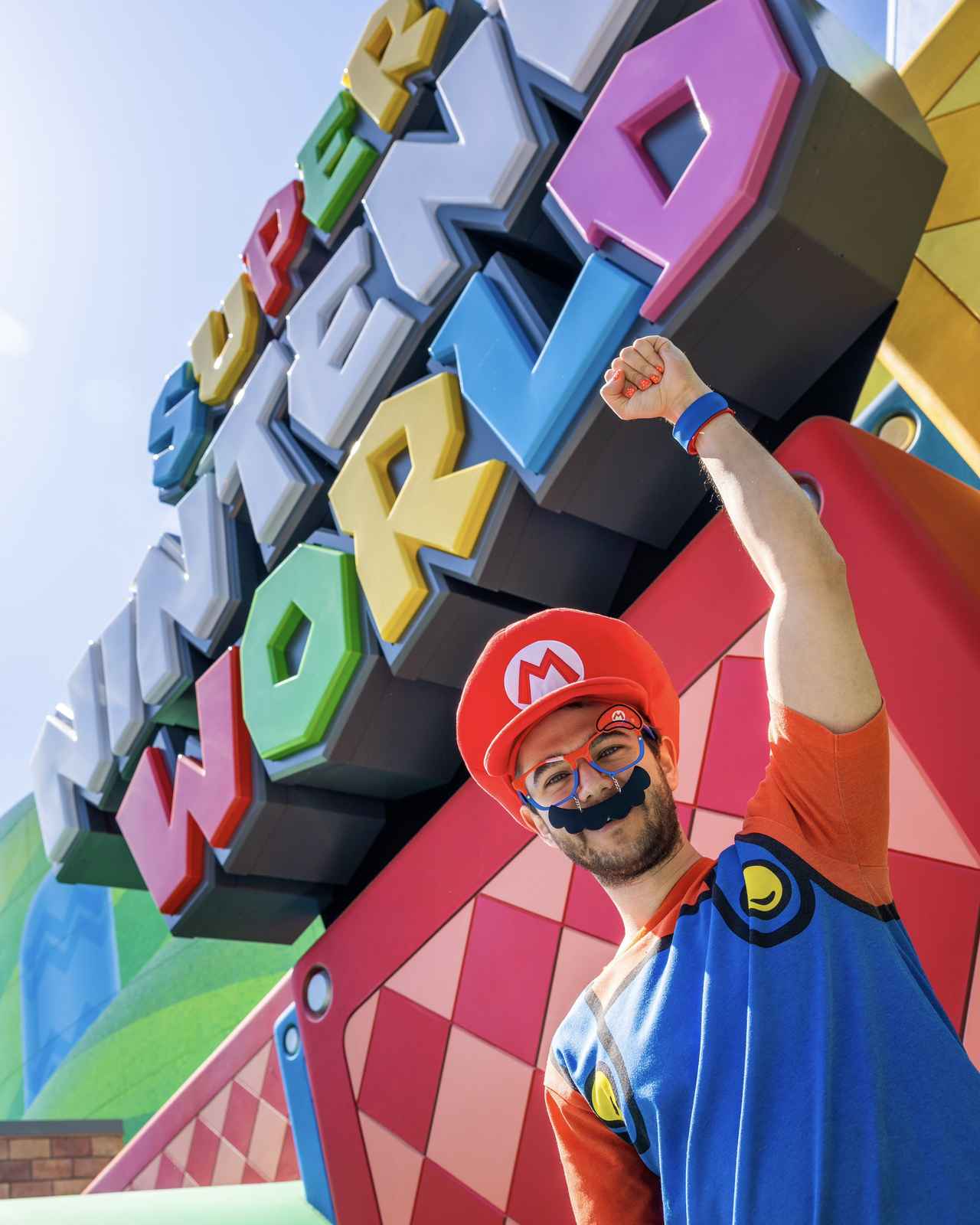当時はマリオのコスプレをして楽しんでいたが、今回もパンツだけ変えて同じスタイルで参加。アメリカでもマリオになりきって「スーパー・ニンテンドー・ワールド」を堪能していた。