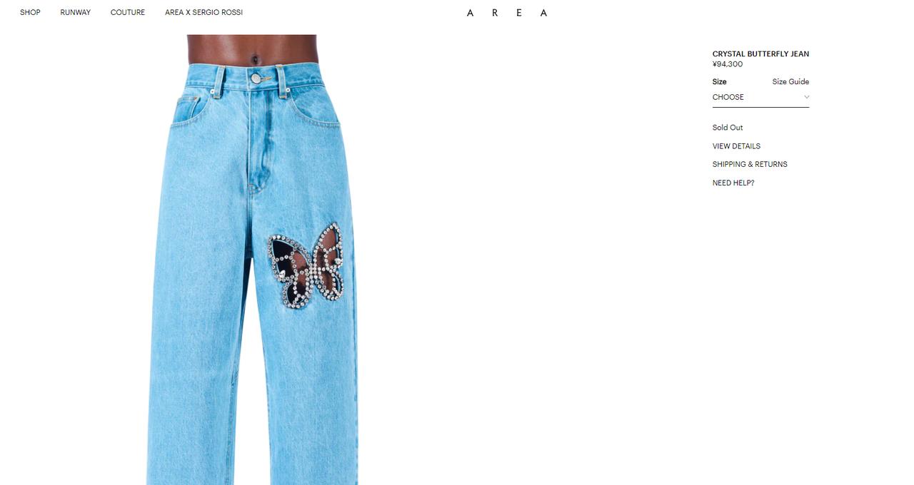 このデニムは、カジュアルなアイテムをクリスタルやファーを使ってアップグレードするのを得意とするエリア(Area)のもので、そのお値段9万4,300円。クリスタルが使われていることもあり、お値段も張るこのデニムだが、テイラーが履いているのが目撃されると瞬く間に全サイズがソールドアウト。