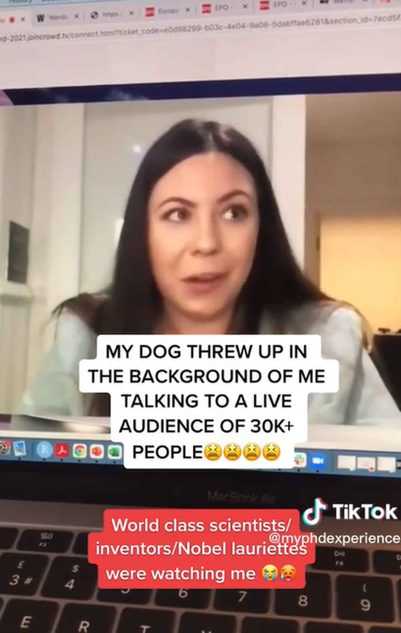 @myphdexperience I cant even watch it anymore because i cringe so much �� #dogbarf #funnydog #funnydogs #zoommeetingfails #embarrassing ♬ original sound – Ellie Hurer