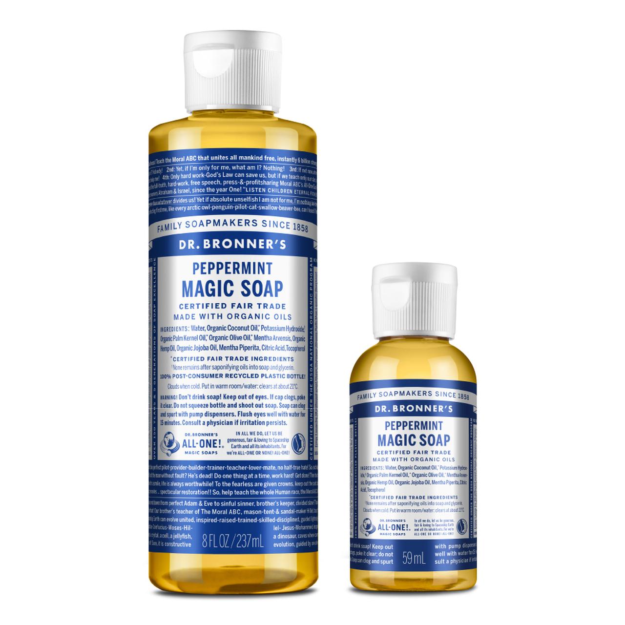 ドクターブロナー マジックソープ ペパーミントセット 237mL、59mL/1,320円(税込)
