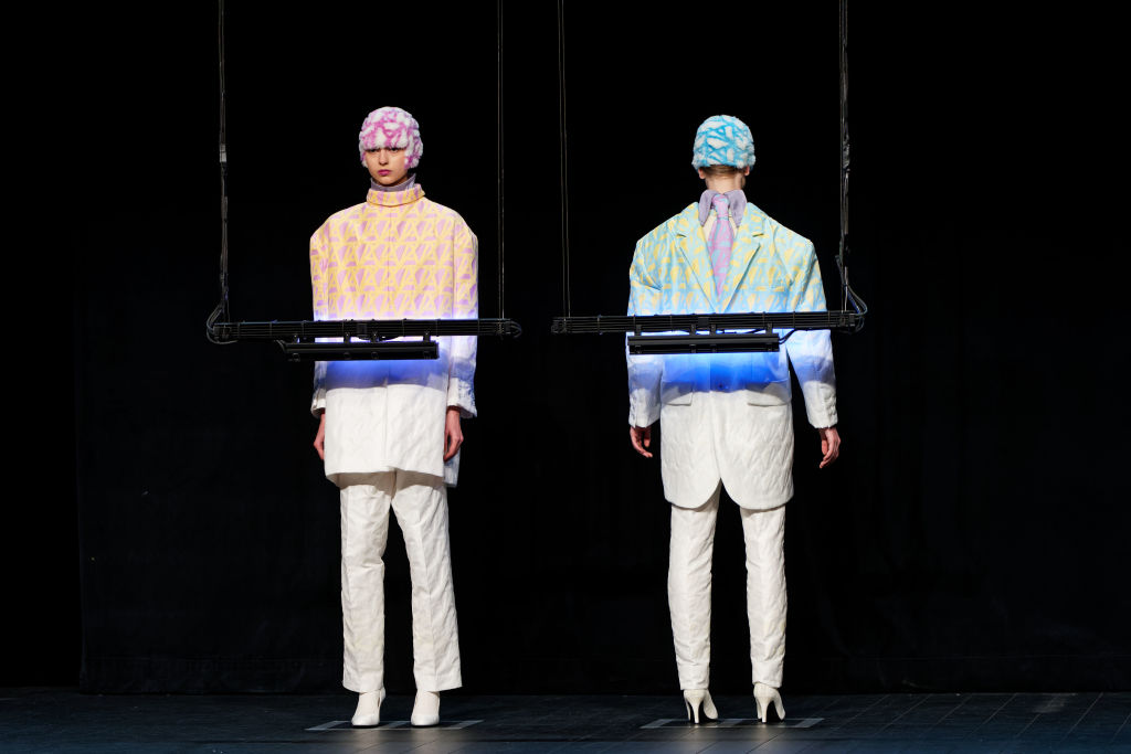 その中には、なんと日本人デザイナー森永邦彦氏が手掛けるアンリアレイジ(ANREALAGE)のものも起用された。アンリアレイジはフォトクロミックという太陽光によって色変わるという特性を持つ生地を取り入れており、2023年3月のパリコレでお披露目されたショーでは、UVライトを当てて真っ白の服にデザインを浮かび上がらせる演出が話題に。
