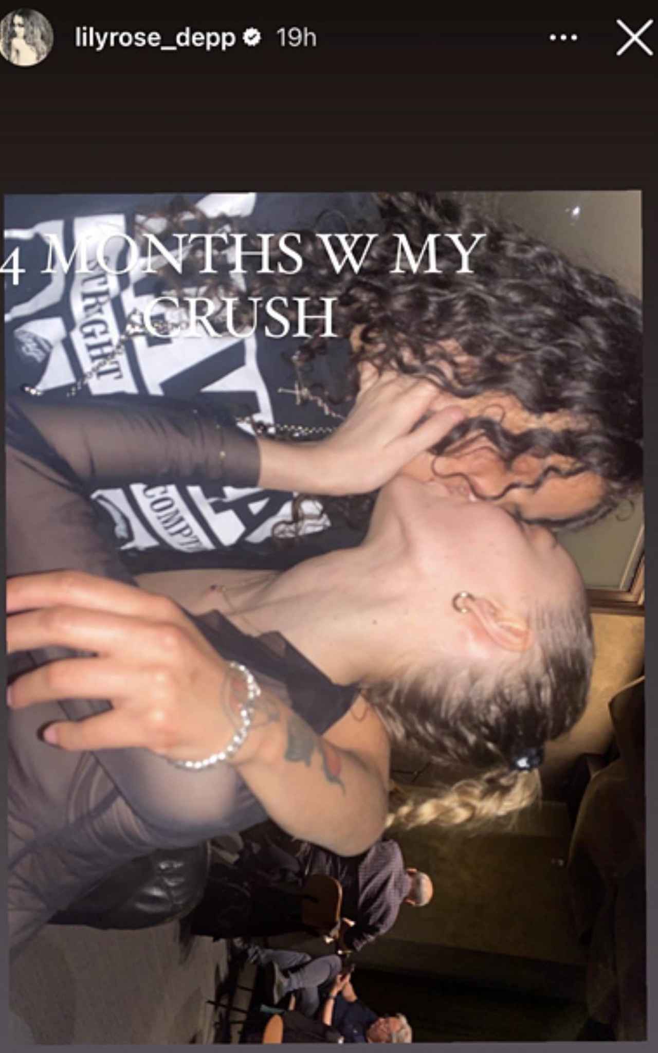 俳優として活躍するリリー・ローズ・デップが、公式インスタグラムのストーリーズに、ラッパーの070シェイクとキスする写真をアップ。「私の好きな人と(交際)4ヵ月」というコメントを添えて、070シェイクとの交際を認めた。