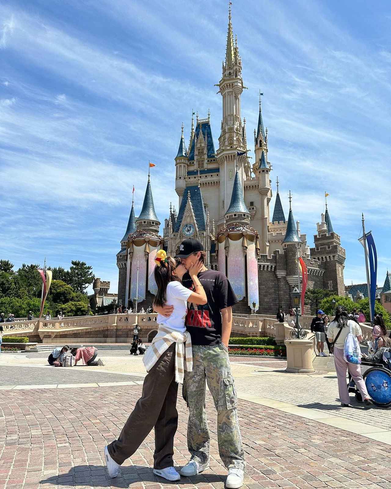 ミリーとジェイクは東京でもゆっくりできたようで、その様子をジェイクが自身のインスタグラムで公開。ジェイクが公開した“日本旅行記”の中には、東京ディズニーランドでの写真も。ミリーはくまのプーさんのカチューシャをつけ、ジェイクは「龍」という漢字がデザインされたキャップを被って東京ディズニーランドを楽しんでおり、2人はシンデレラ城の前でキス。