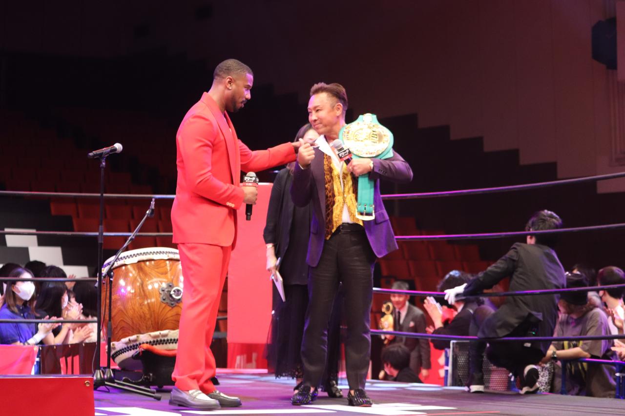 日本の歴代世界チャンピオンである薬師寺保栄氏、飯田覚士氏、西岡利晃氏、山中慎介氏が登場すると、かっこいいと言うかのように「ふぅ~」とリアクション。チャンピオン4人全員にマイケルの方から握手を求めに行くという低姿勢ぶり。通訳さんがいなくても関係なしで、全員に話しかけて会話をしようとしていた。