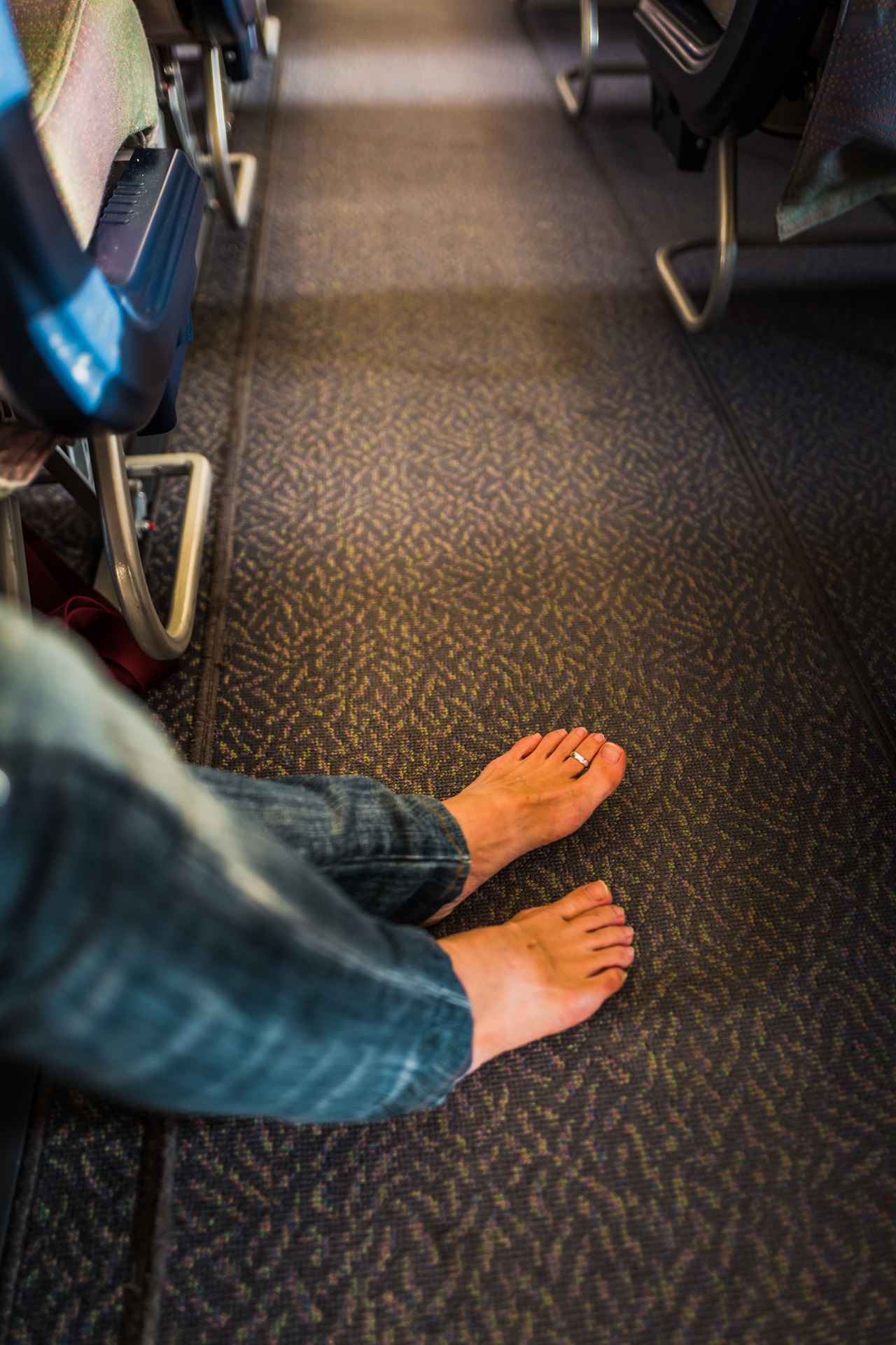 飛行機の中で靴を脱いで裸足になるのはアリ?ナシ?
