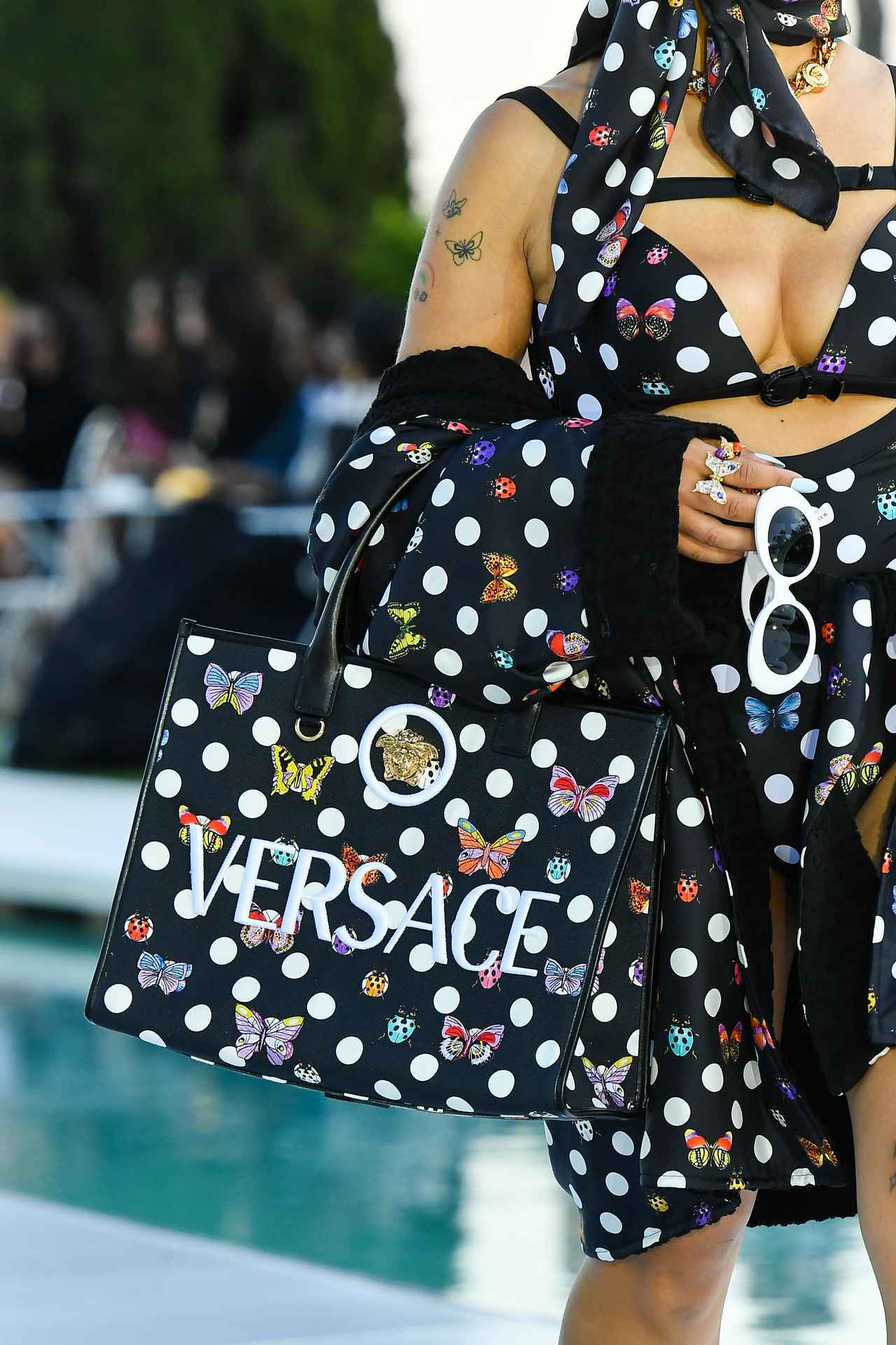 夏全開なヴェルサーチェ×デュア・リパのコレクション、バタフライ&レディバグがポイント