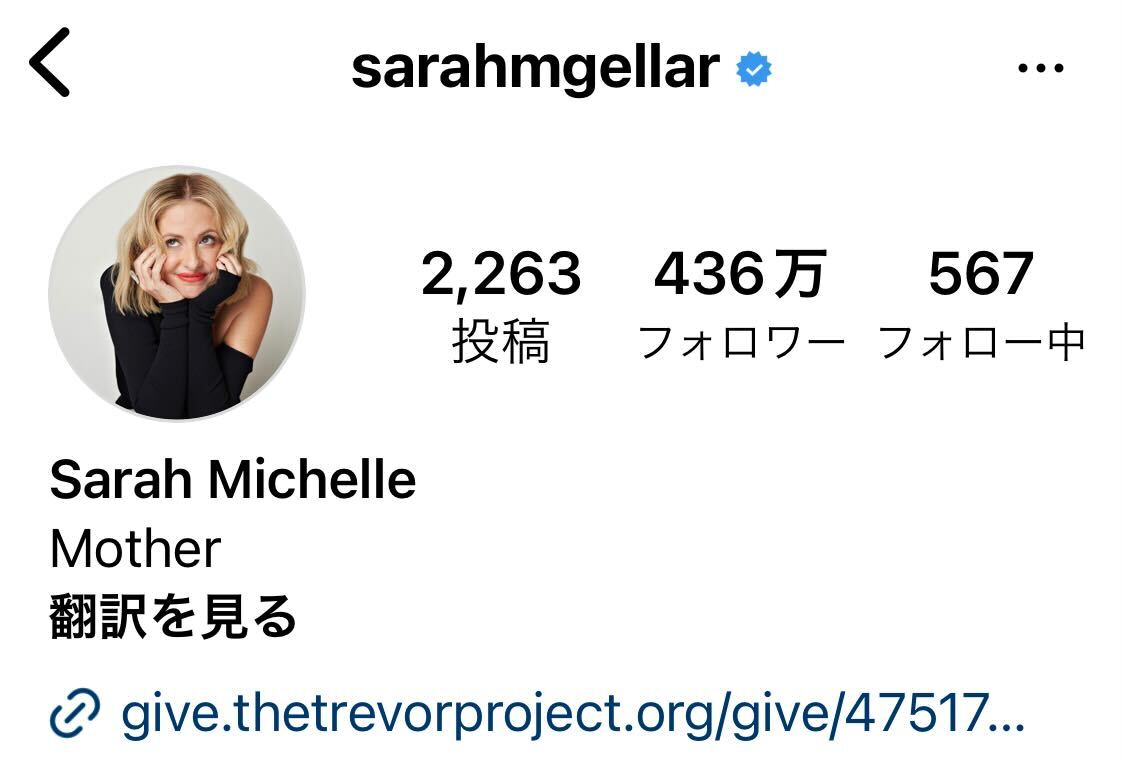 映画『クルーエル・インテンションズ』や『ラストサマー』で知られるサラ・ミシェル・ゲラーがそれで、彼女の場合、ドラマ『バフィー 〜恋する十字架〜』で演じたバフィー・アン・サマーズが「ゲイ・アイコン」としてLGBTQ+コミュニティで人気が高く、さらに、親として子どもに多様なジェンダーやセクシュアリティが存在することを教えていることを公言しているLGBTQ+アライである点が、「マザー」認定に繋がっている。自分が「マザー」と呼ばれていることについては承知していて、「とても光栄なこと」と語るサラ。「マザー」認定後、彼女のインスタグラムの自己紹介欄には「マザー」という文字が加えられ、現在、プロフィールのURLにはLGBTQ+をサポートするトレバー・プロジェクトへの寄付ページが載せられている。