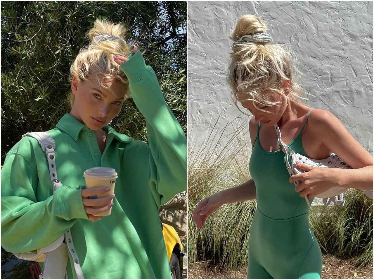 モデルのエルザ・ホスクは、シュシュでざっくりまとめてつくるシニヨンアレンジを披露。高めの位置でシニヨンをつくり、ちょっぴりアクティブなムードに。おくれ毛はピンなどで留めず、あえて残すのがエルザ流。