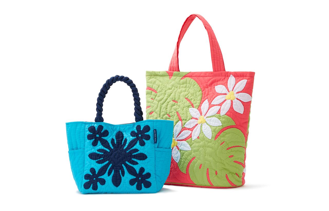 <ミウミントアロハ> 左)ハワイアンキルト スクエアバッグ 14,080円 右)ハワイアンキルト ジッパー 大型バッグ 16,280円 ※5点限り