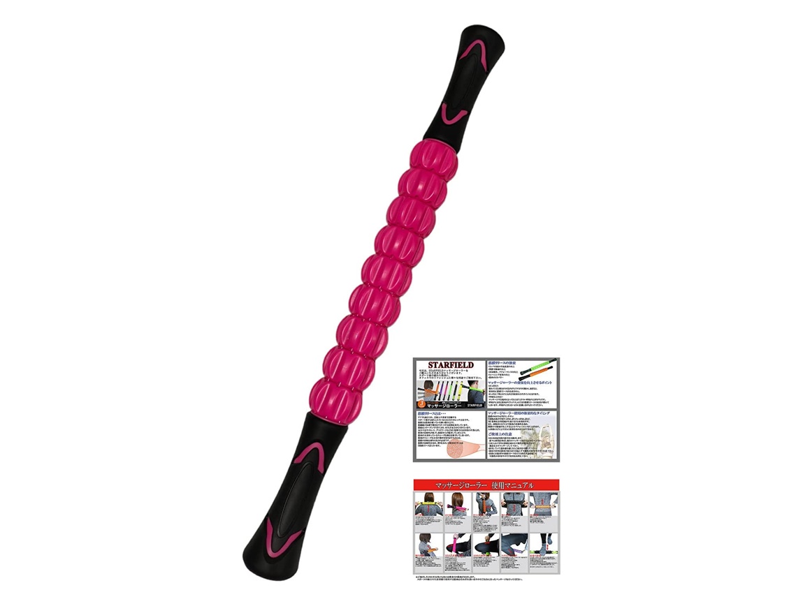 STARFIELDの「マッサージローラースティック」は、今人気上昇中のスティックタイプの筋膜ローラー。9つのローラーパーツがそれぞれ独立して動き、身体の形状に沿い回転。場所を選ばず、ながらマッサージができる。