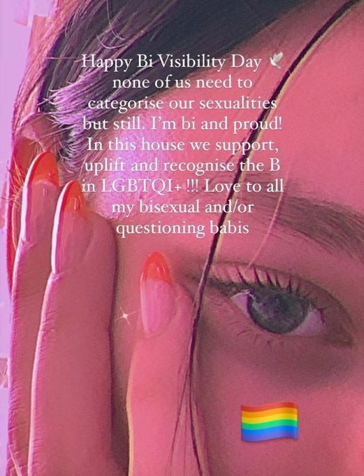 バイセクシャルであることを公言しているジェシカ・アレクサンダー。ある年のバイセクシャル可視化の日には、「自分のセクシュアリティを分類する必要はありませんが、とはいえ、私はバイであり、それを誇りに思っています!」とインスタグラム・ストーリーズに投稿。
