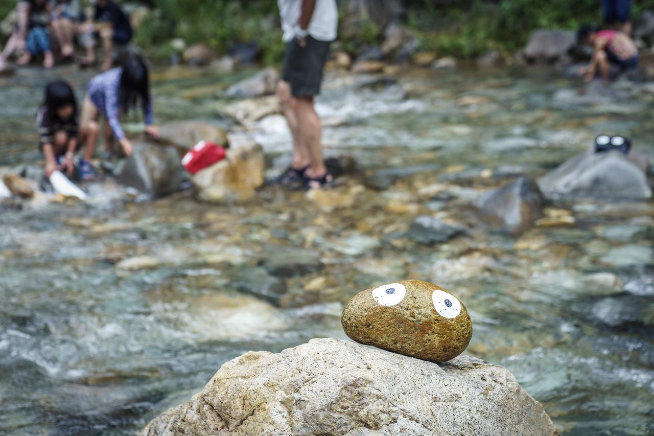東京に比べると現地はひんやり涼しいが、日中は暑さがこたえることも。そんな時は、川遊びに出かけてクールダウン。真夏でもヒヤッとする新潟の透き通った名水で涼みながら、フジロックのお馴染みアートキャラ「ゴンちゃん」を何個見つけられるだろうか?