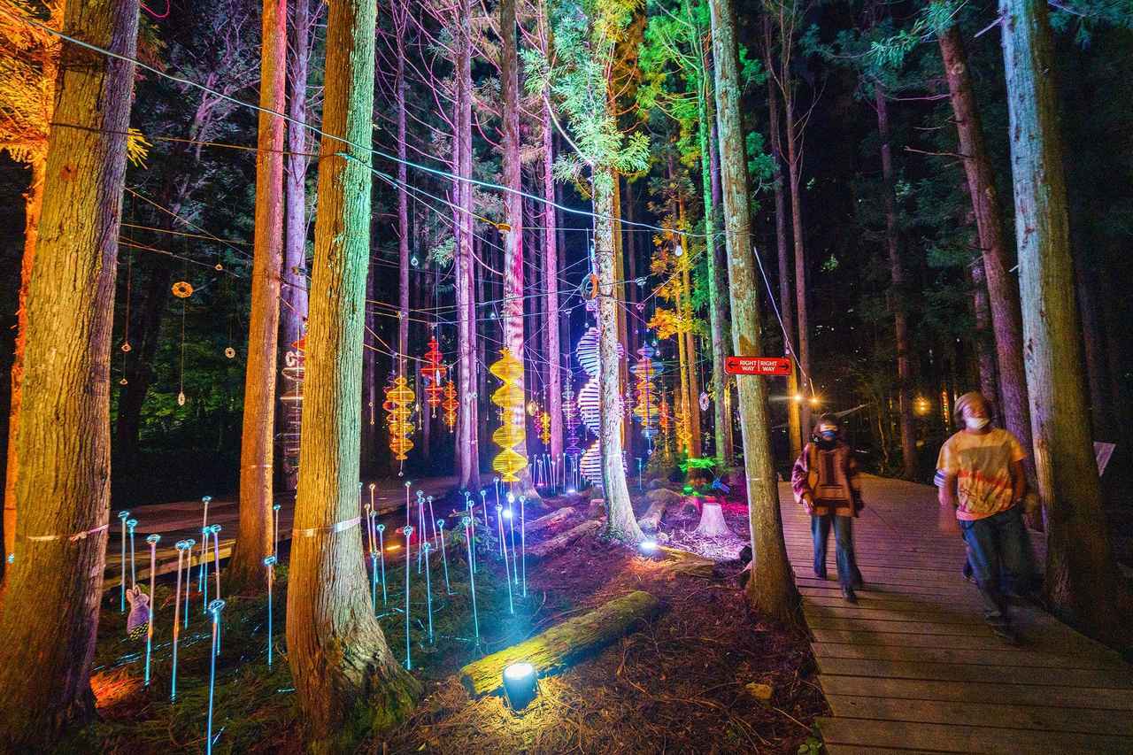 フジロックが苗場の森へのリスペクトを示すため、地元民やボランティアと共に行なっている自然保護活動「フジロックの森プロジェクト」。森で伐採した間伐材(※)ポスターやフライヤー、割箸に使用しているほか、2002年からはボードウォークの着工を開始。フェス開催中はステージ間をつなぐ道になり、昼にはマイナスイオンが気持ち良く、夜には幻想的なナイトウォークが楽しめる。