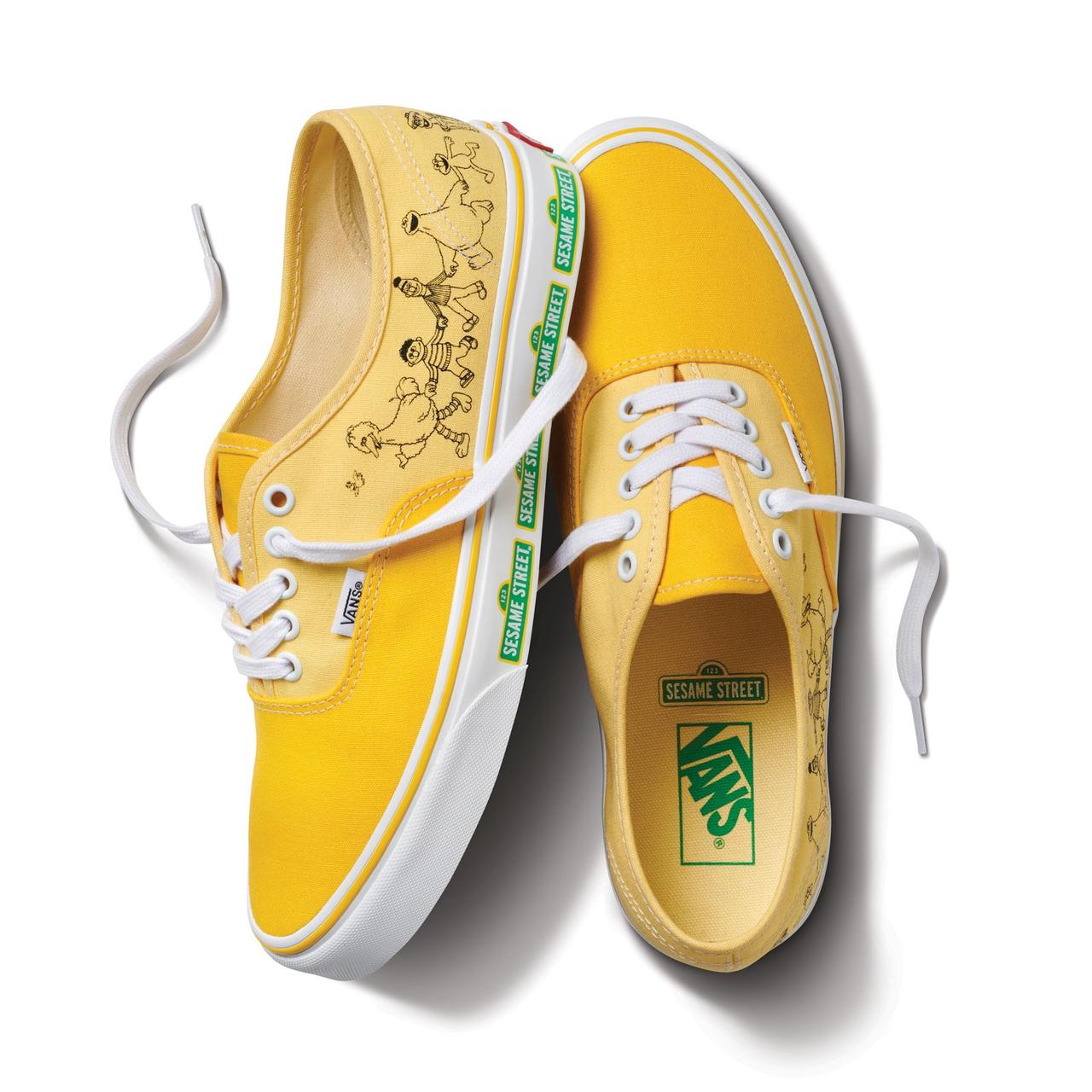 また、大人向けのコレクションでは、サイドウォールにセサミストリートのロゴをあしらったイエローのオーセンティックが登場。クォーターパネルには、ビッグバード、アーニー、バート、クッキーモンスター、エルモ、オスカー・ザ・グラウチが仲良く散歩している姿が描かれている。