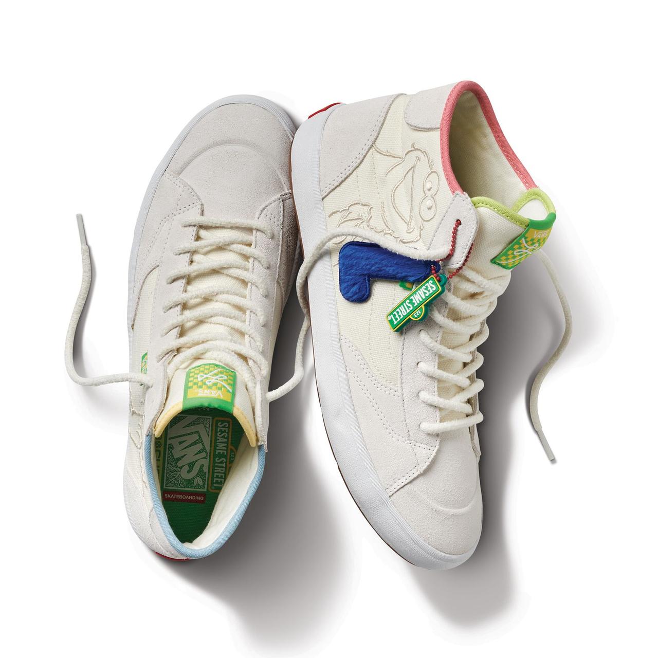 セサミストリートのキャラクターが刺しゅうされたスケートシューズ「Vans x Sesame Street by Lizzie Armanto」には、足首周りにパステルカラーの裏地とファー付きのシューレースがあしらわれ、セサミストリート風にアレンジされたリジーのイニシャル「L」のチャームが付属している。