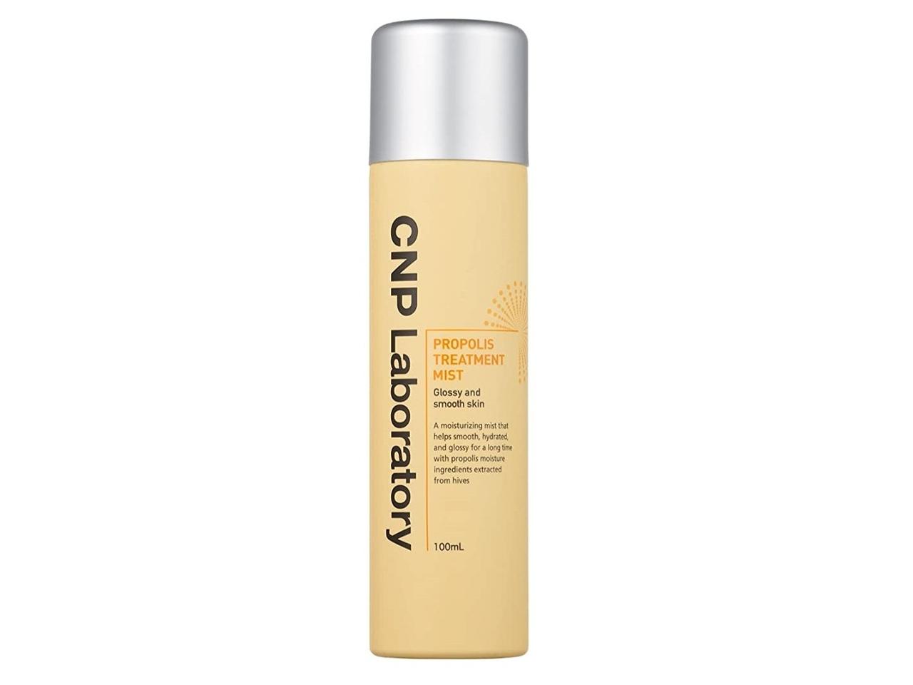 CNP ラボラトリーの「プロポリス トリートメント ミスト」は、長時間うるおいに満ちたツヤ肌へと導く、プロポリスエキス成分入りのミスト状化粧水。細かい霧状のミストで化粧崩れを気にすることなく、メイクの上からも使用できる。